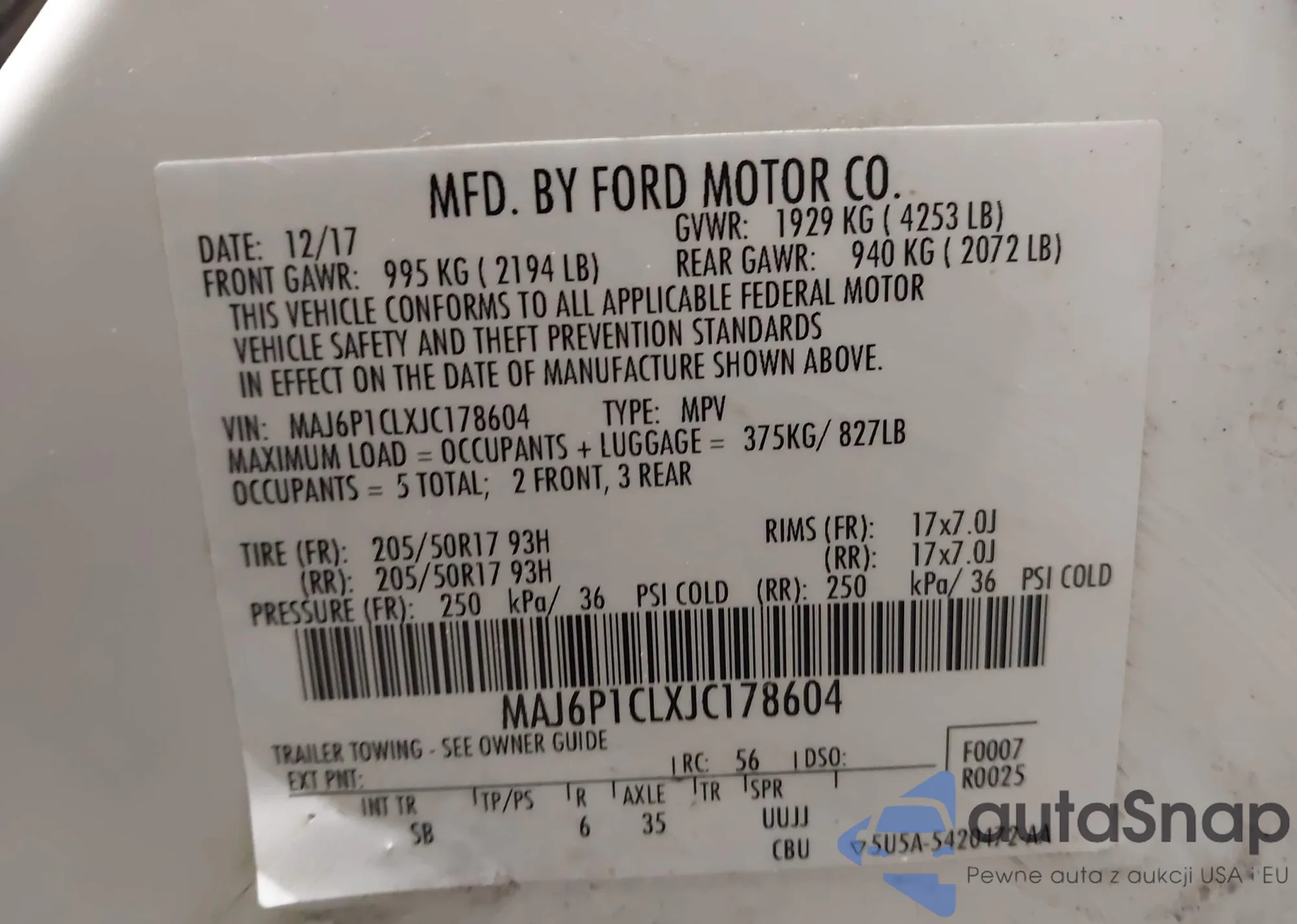 • VIN MAJ6P1CLXJC178604