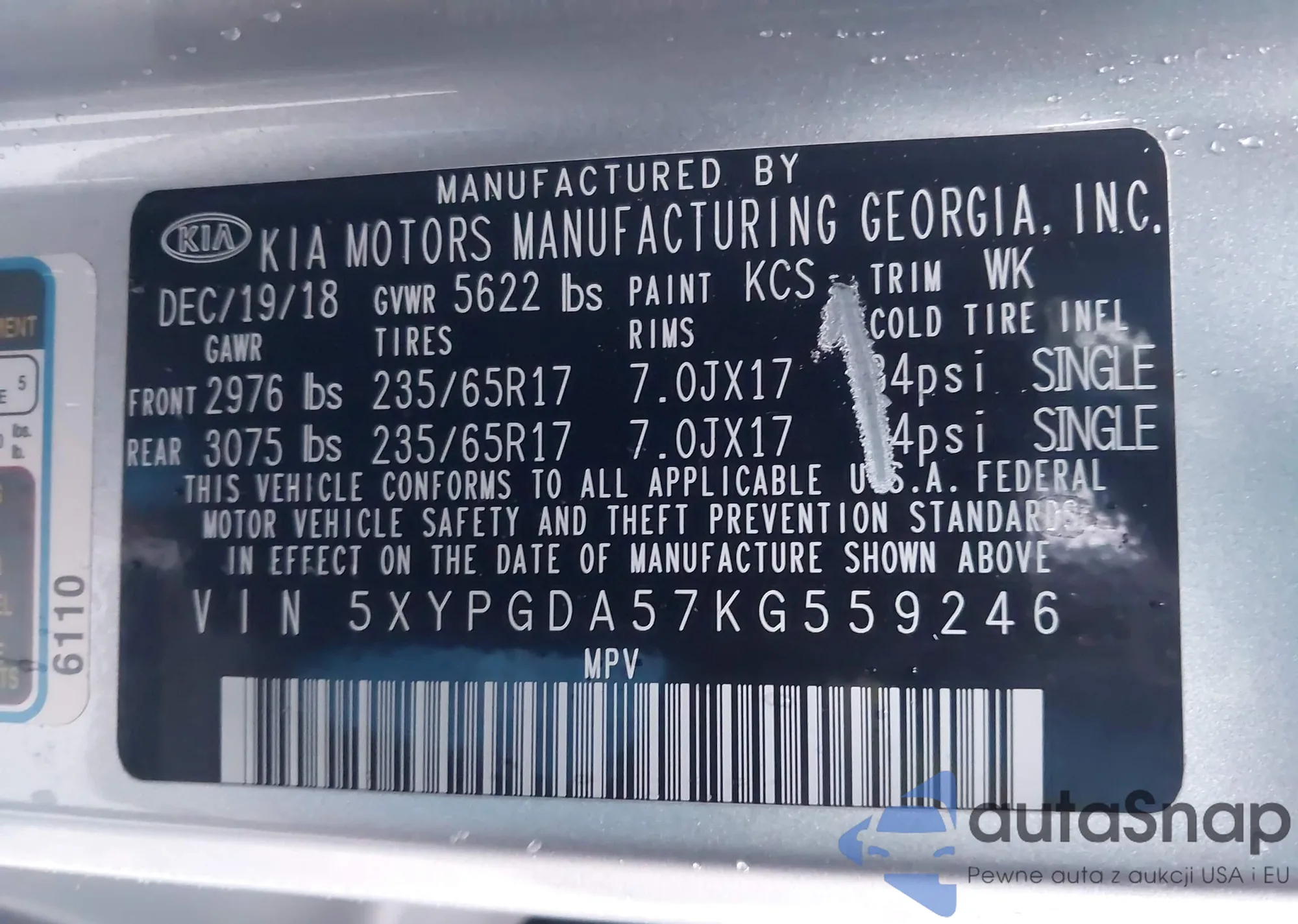• VIN 5XYPGDA57KG559246