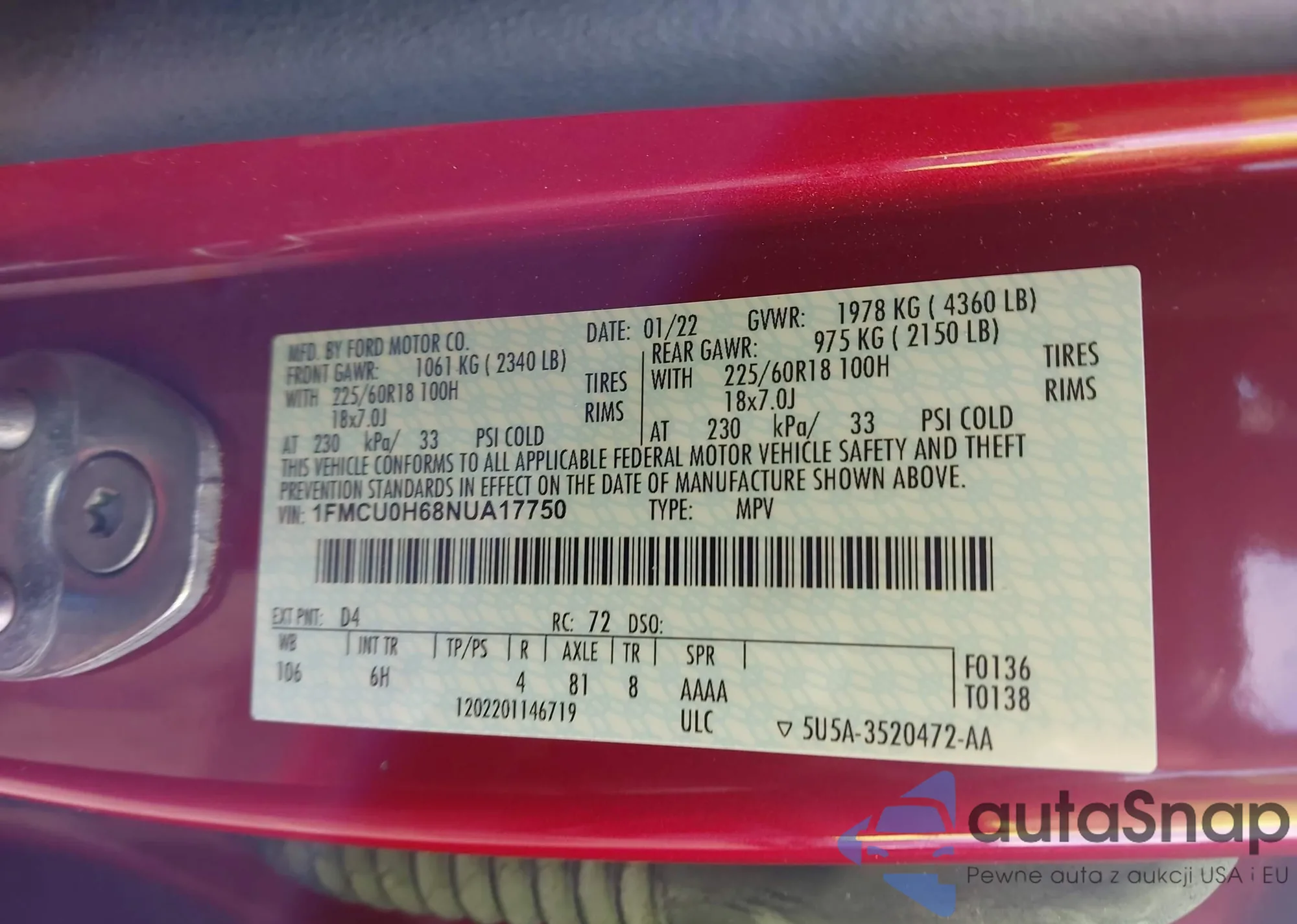 LOT: 43701921 VIN: 1FAGP8UH4R5116803