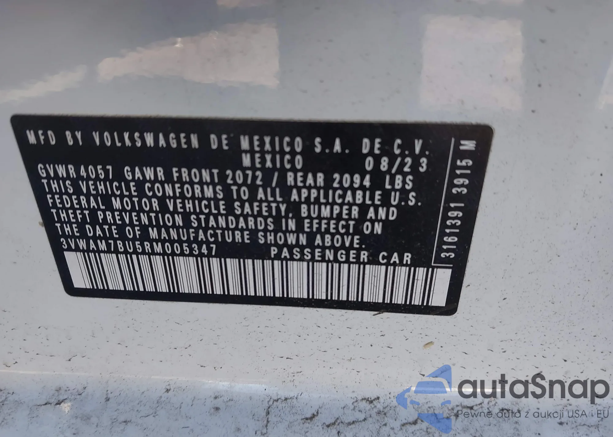• VIN 3VWAM7BU5RM005347