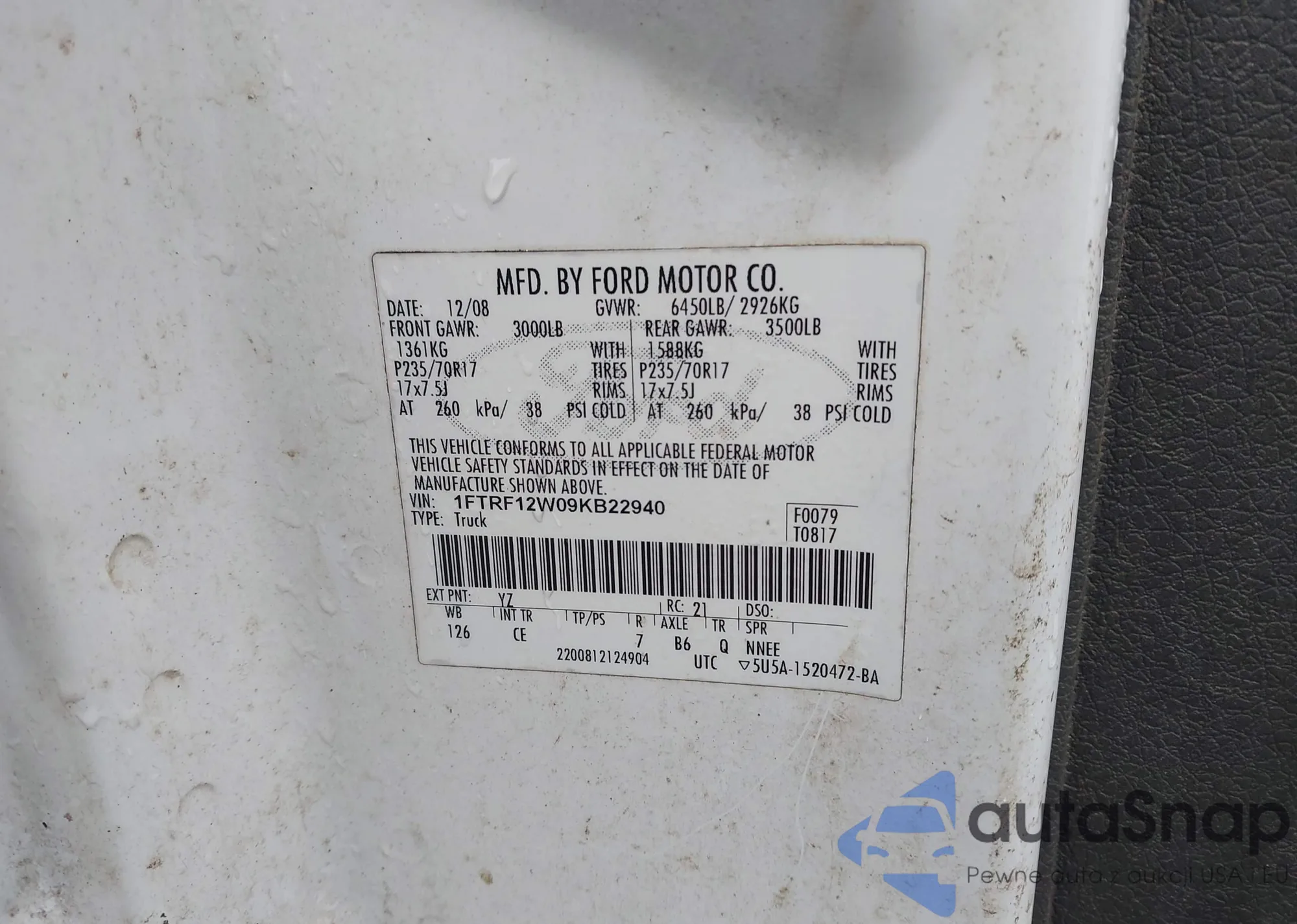 • VIN 1FTRF12W09KB22940