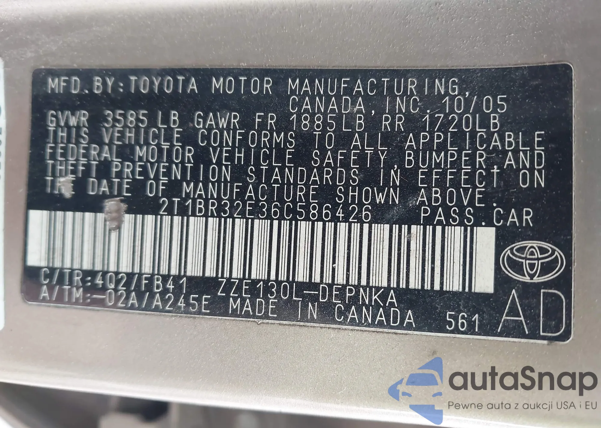 LOT: 43937461 VIN: 1NXBR30E67Z770746