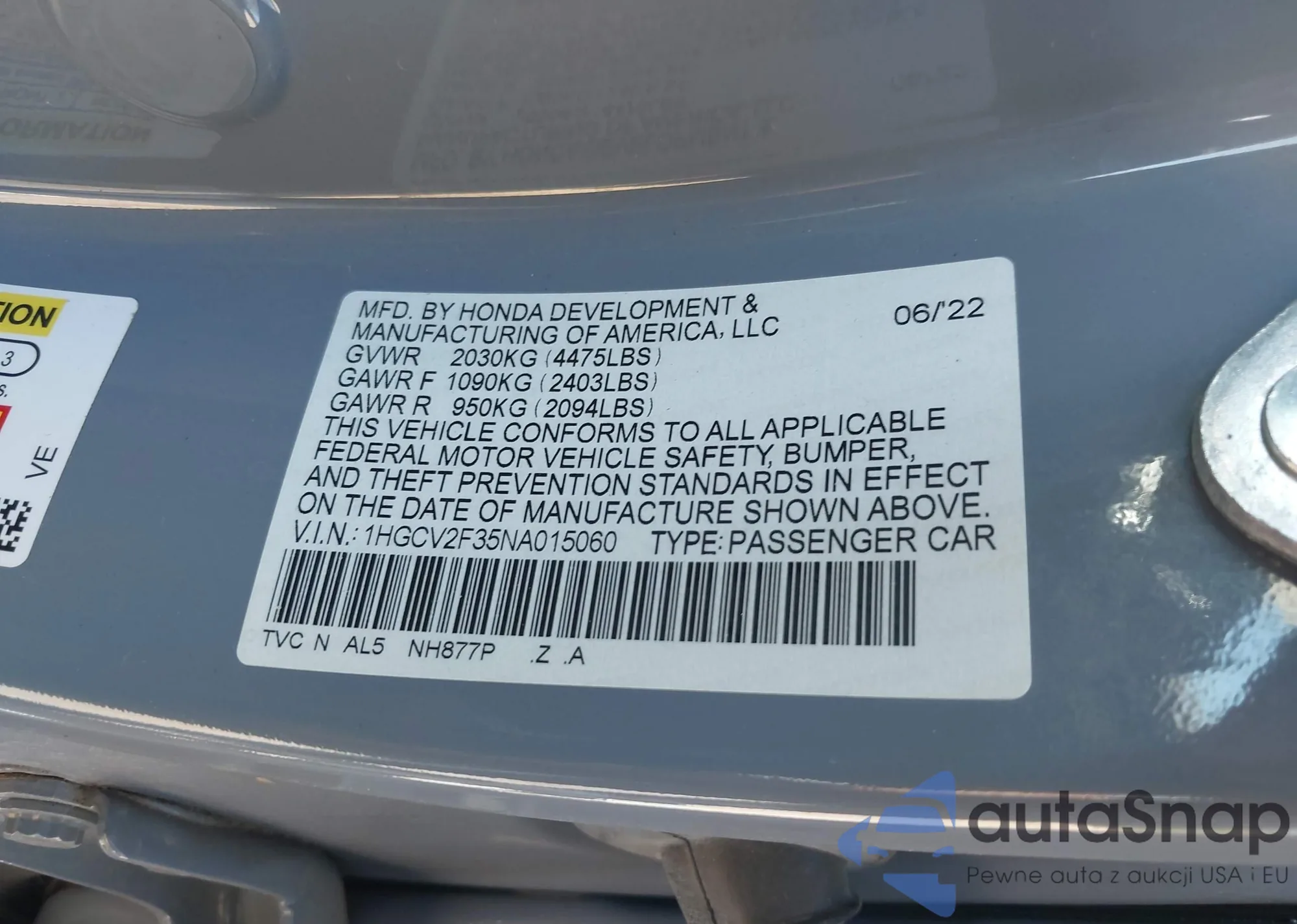 • VIN 2HKRW2H80HH619272