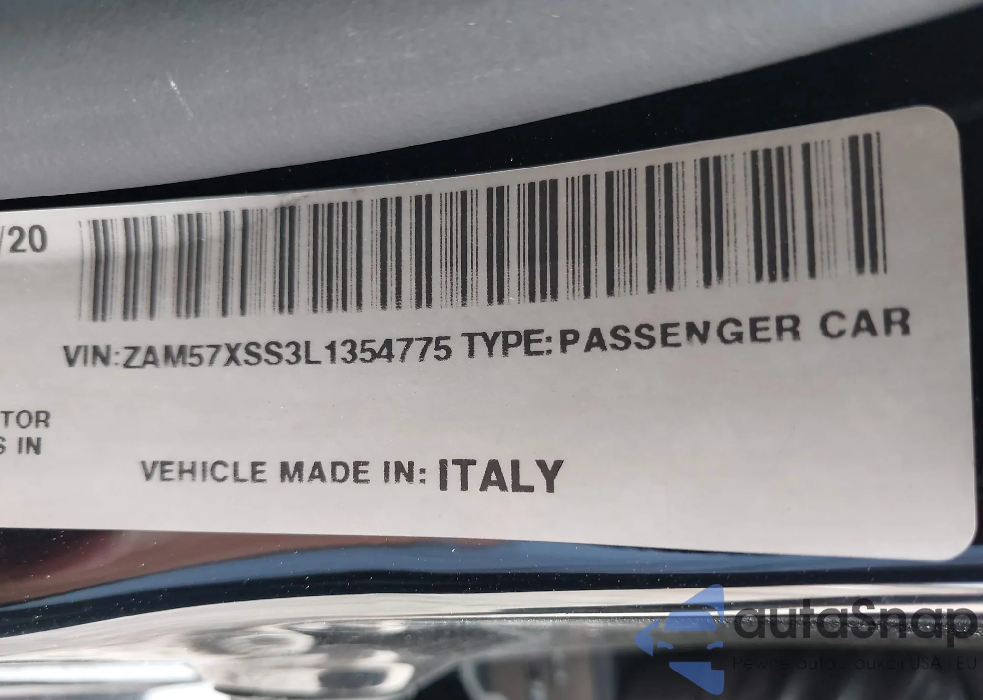 LOT: 42695030 VIN: ZAM57XSS3L1354775