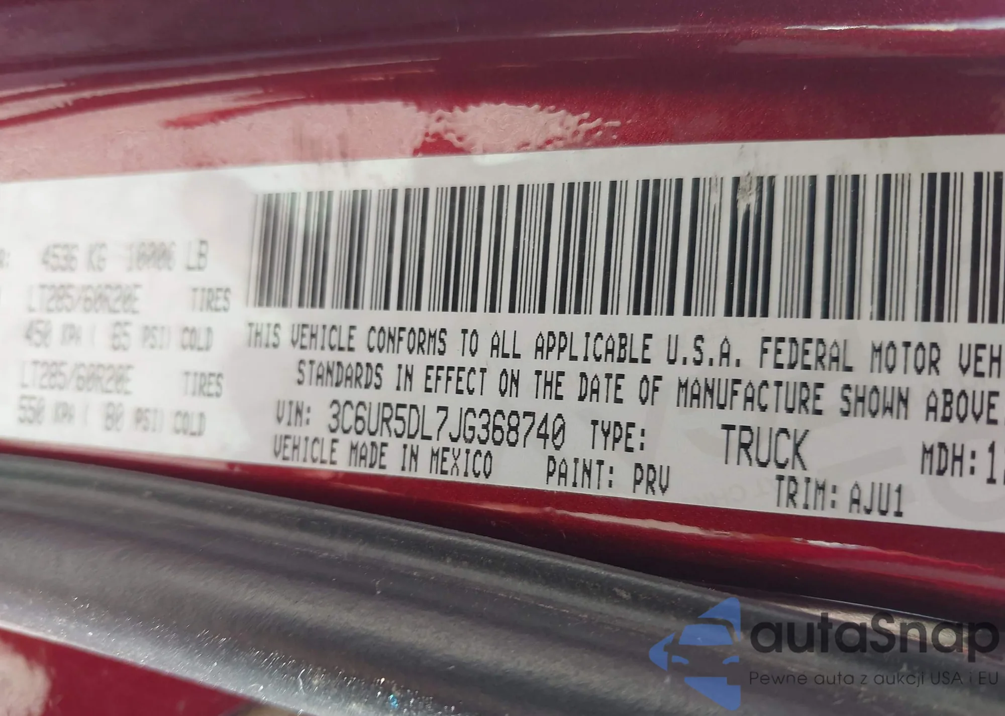 • VIN 3C6UR5DL7JG368740