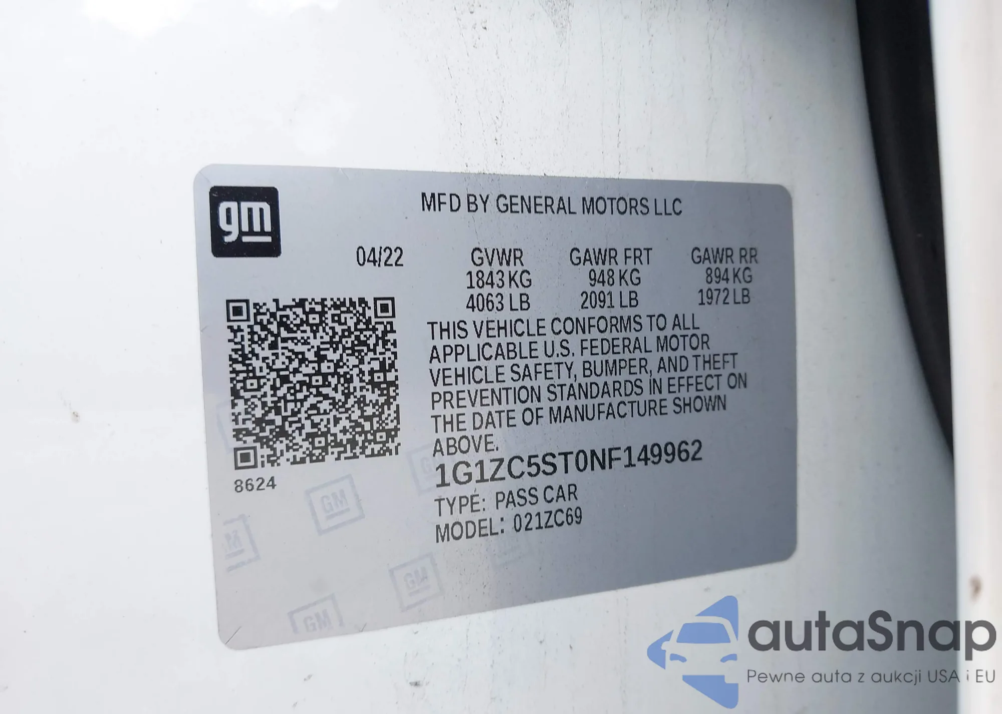 LOT: 43679795 VIN: 7MUCAAAG6NV033994