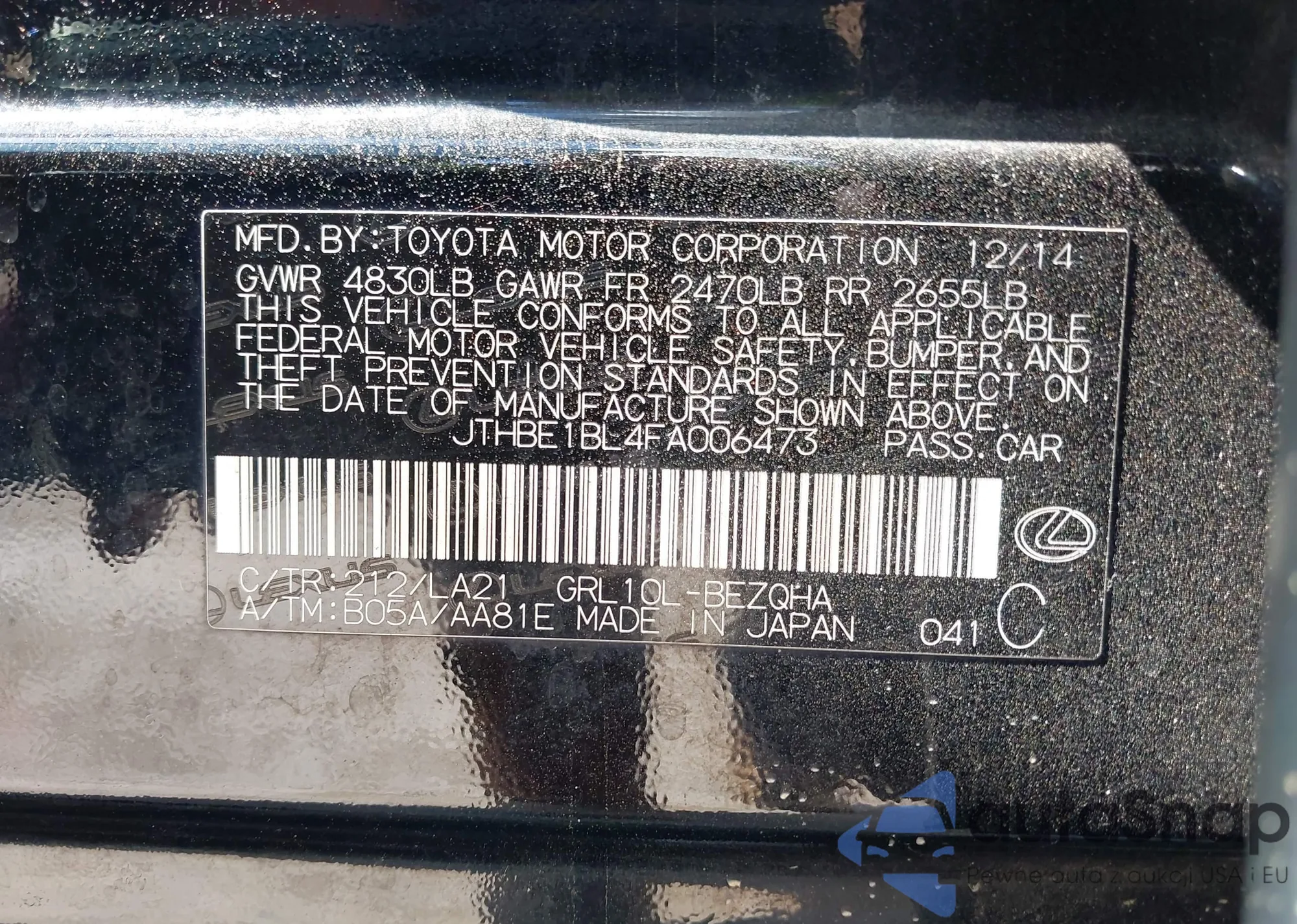 • Lot number 42124615