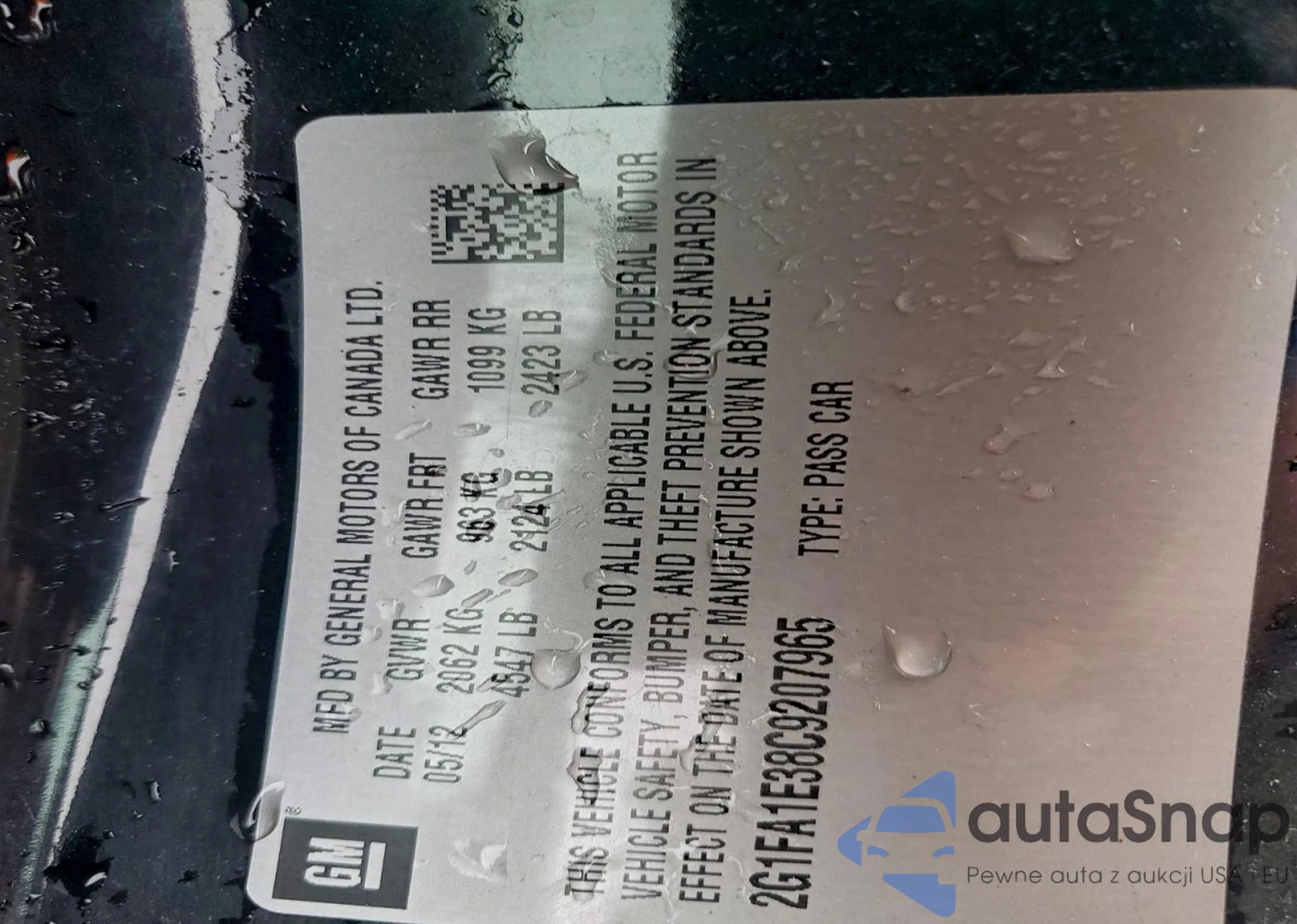 • VIN 2G1FA1E38C9207965