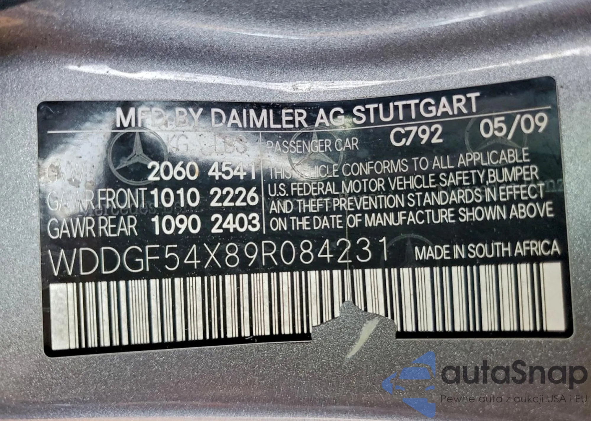• VIN WDDGF54X89R084231