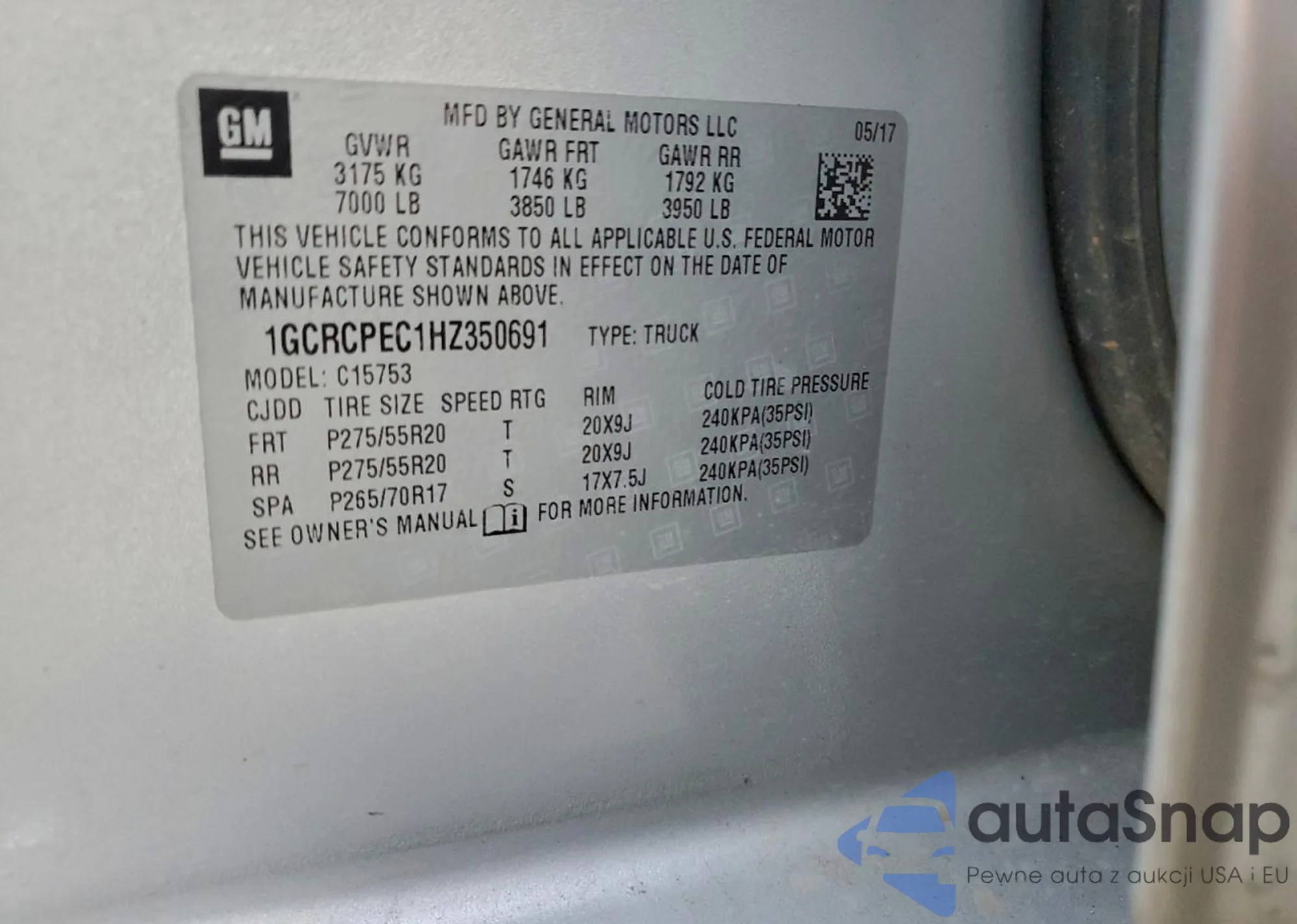 • VIN 1C6SRFFT3KN780107