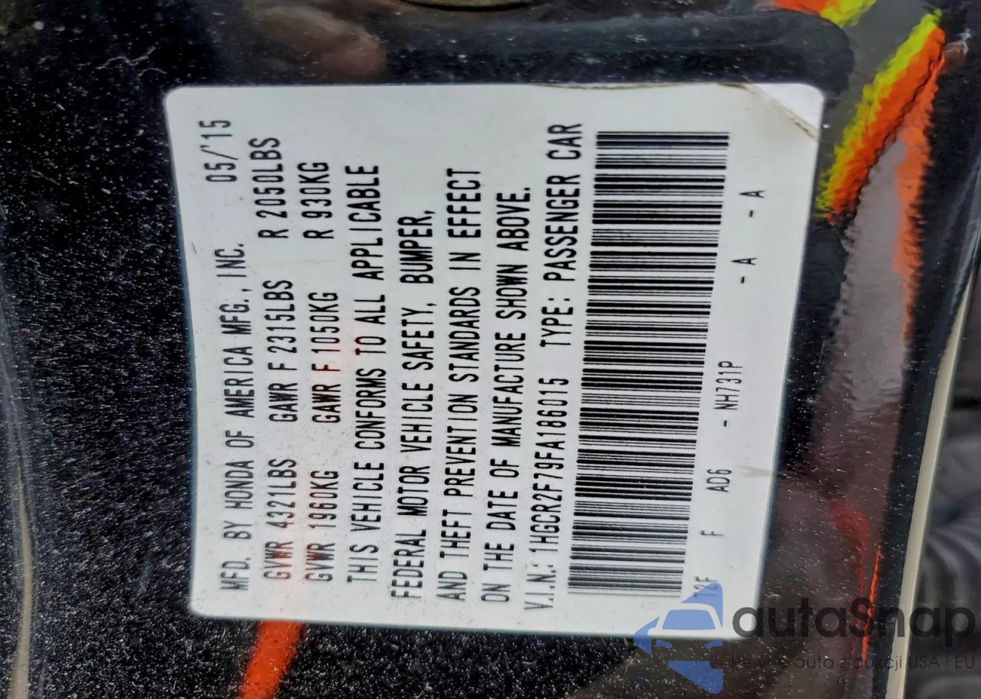 LOT: 92186405 VIN: 7FARW2H97NE040660
