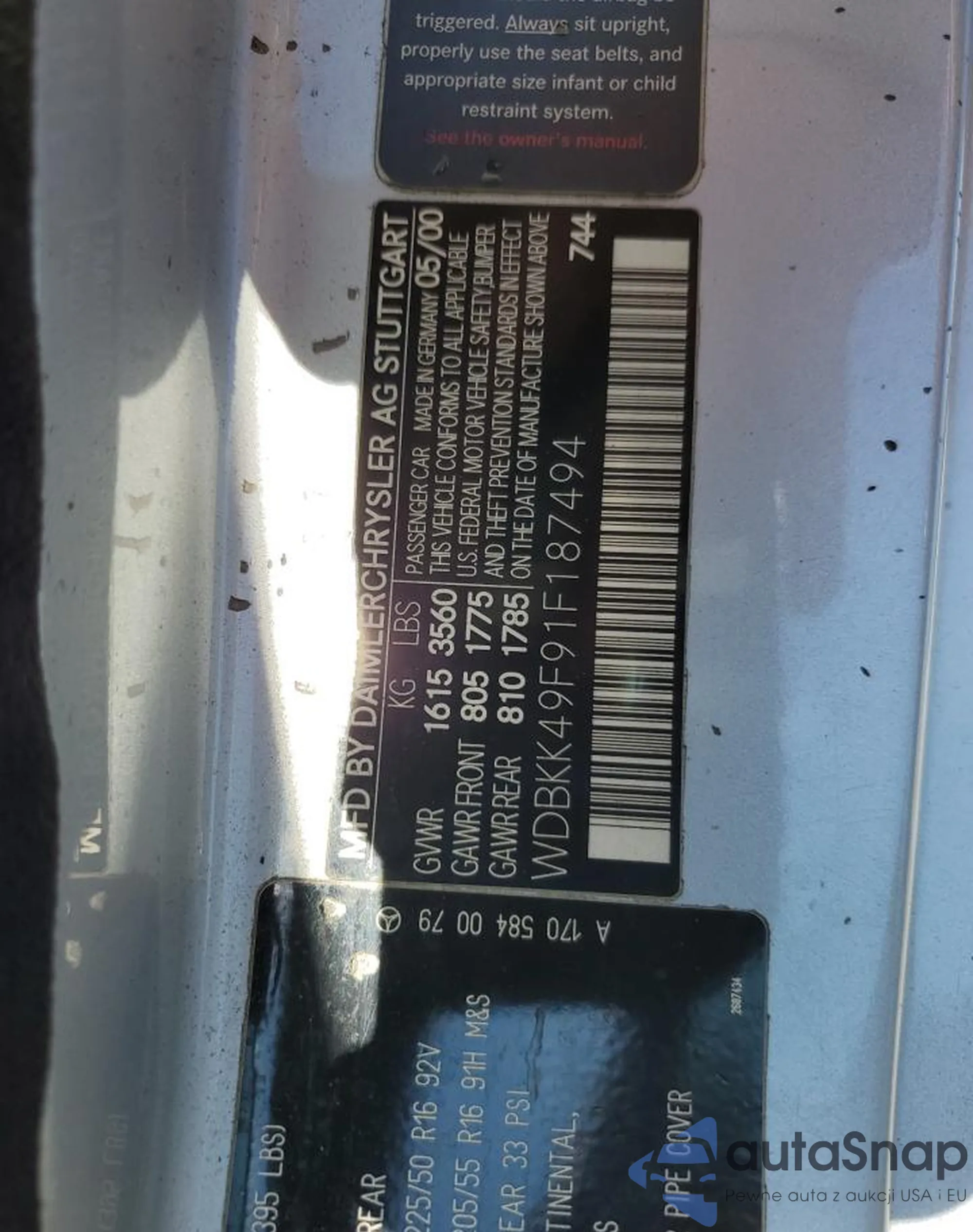 LOT: 90400565 VIN: WDBKK49F91F187494