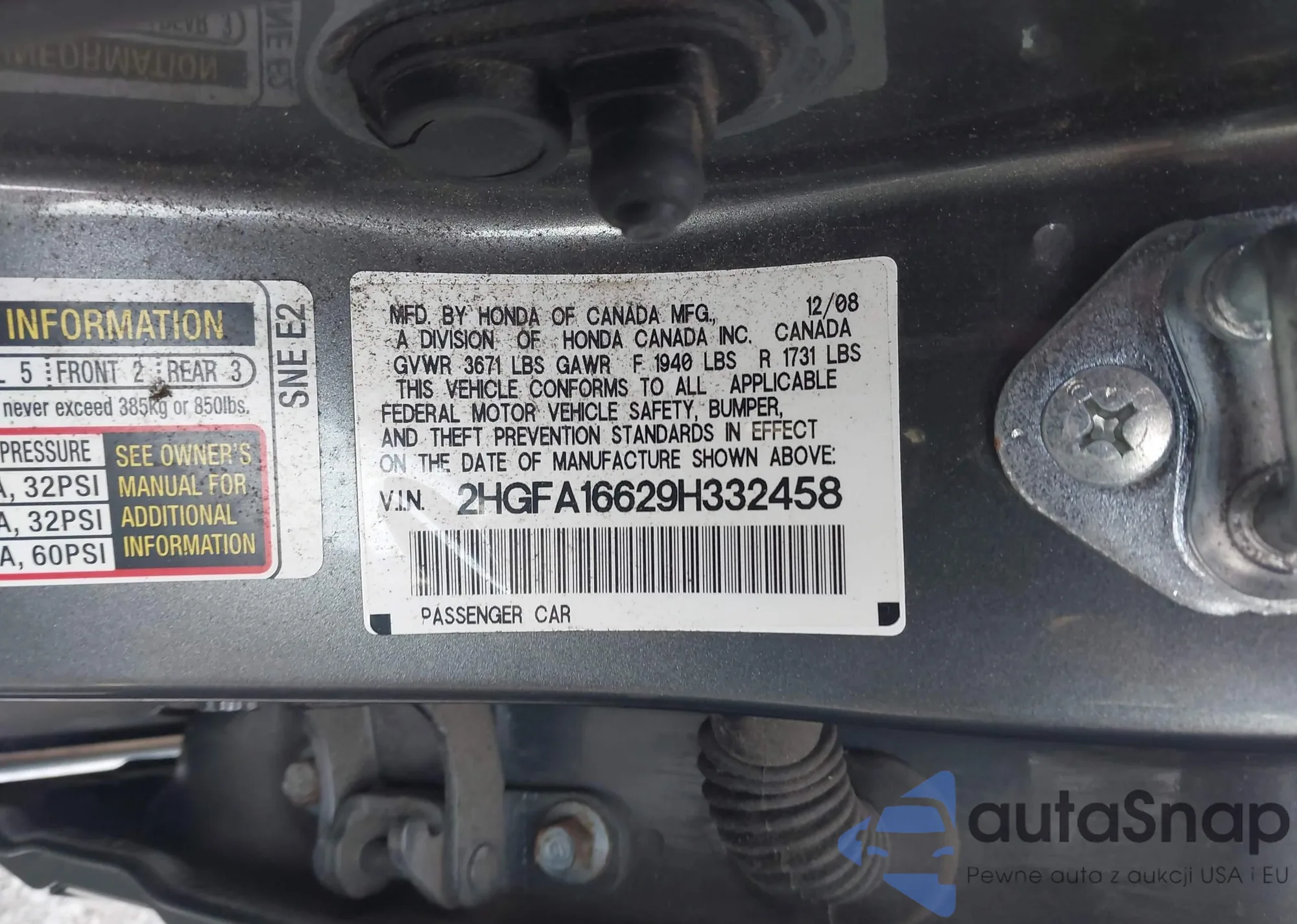 • VIN 2HGFA16629H332458