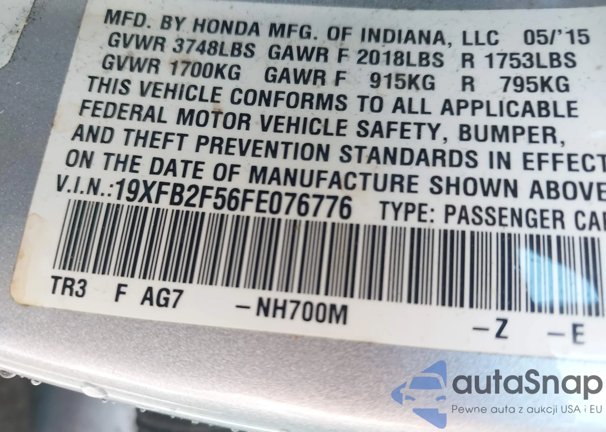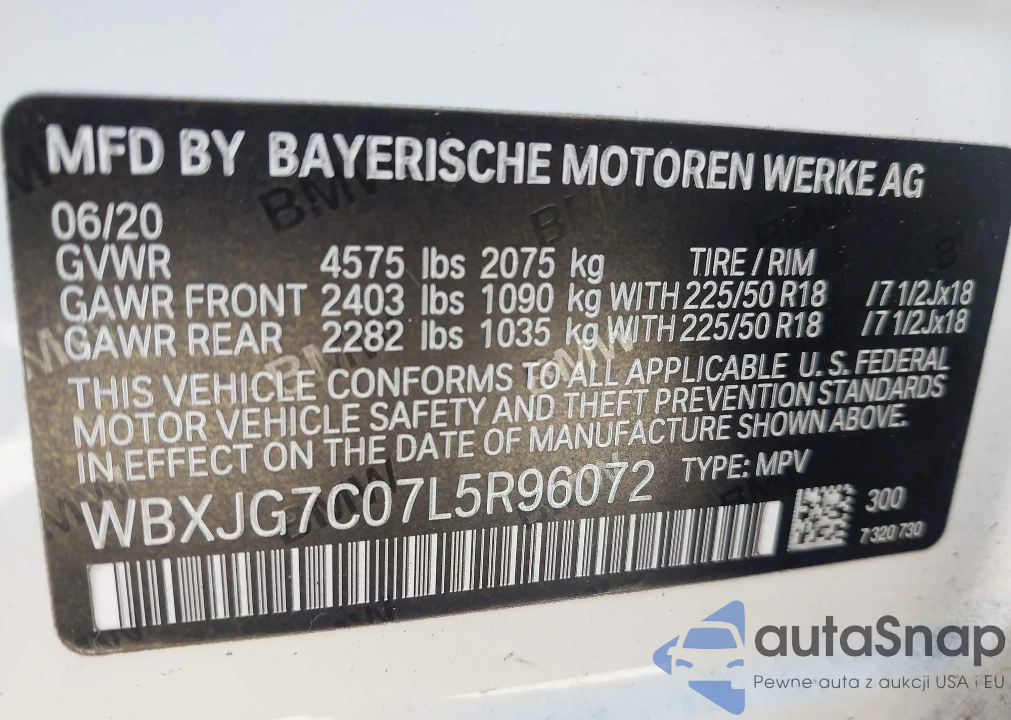 LOT: 43666637 VIN: WBXJG7C07L5R96072