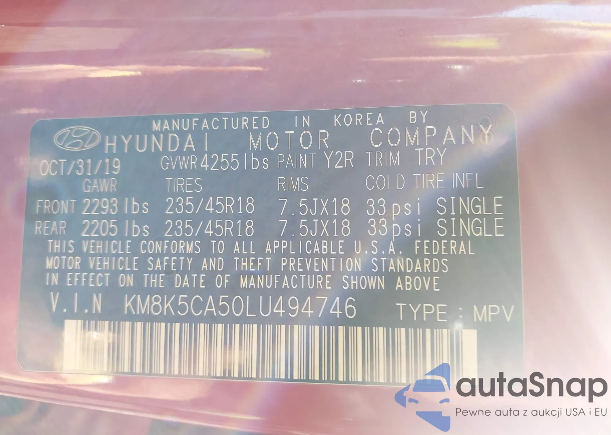 • VIN KM8K5CA50LU494746