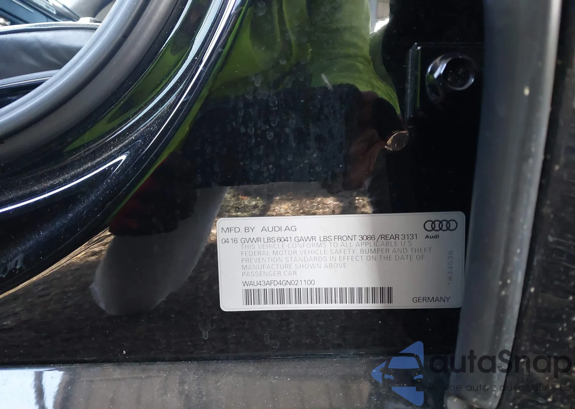 • VIN WAU43AFD4GN021100