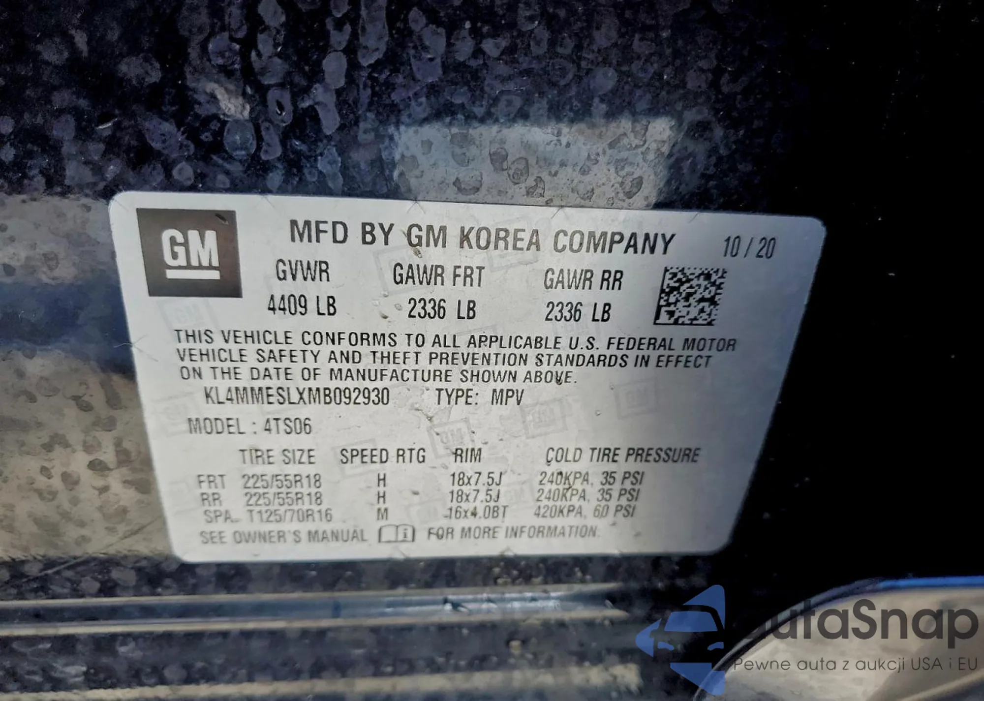 • VIN KL4MMESLXMB092930