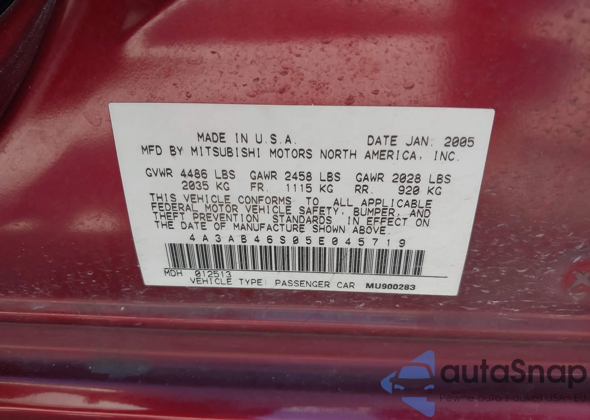 • VIN 4A3AB46S05E045719