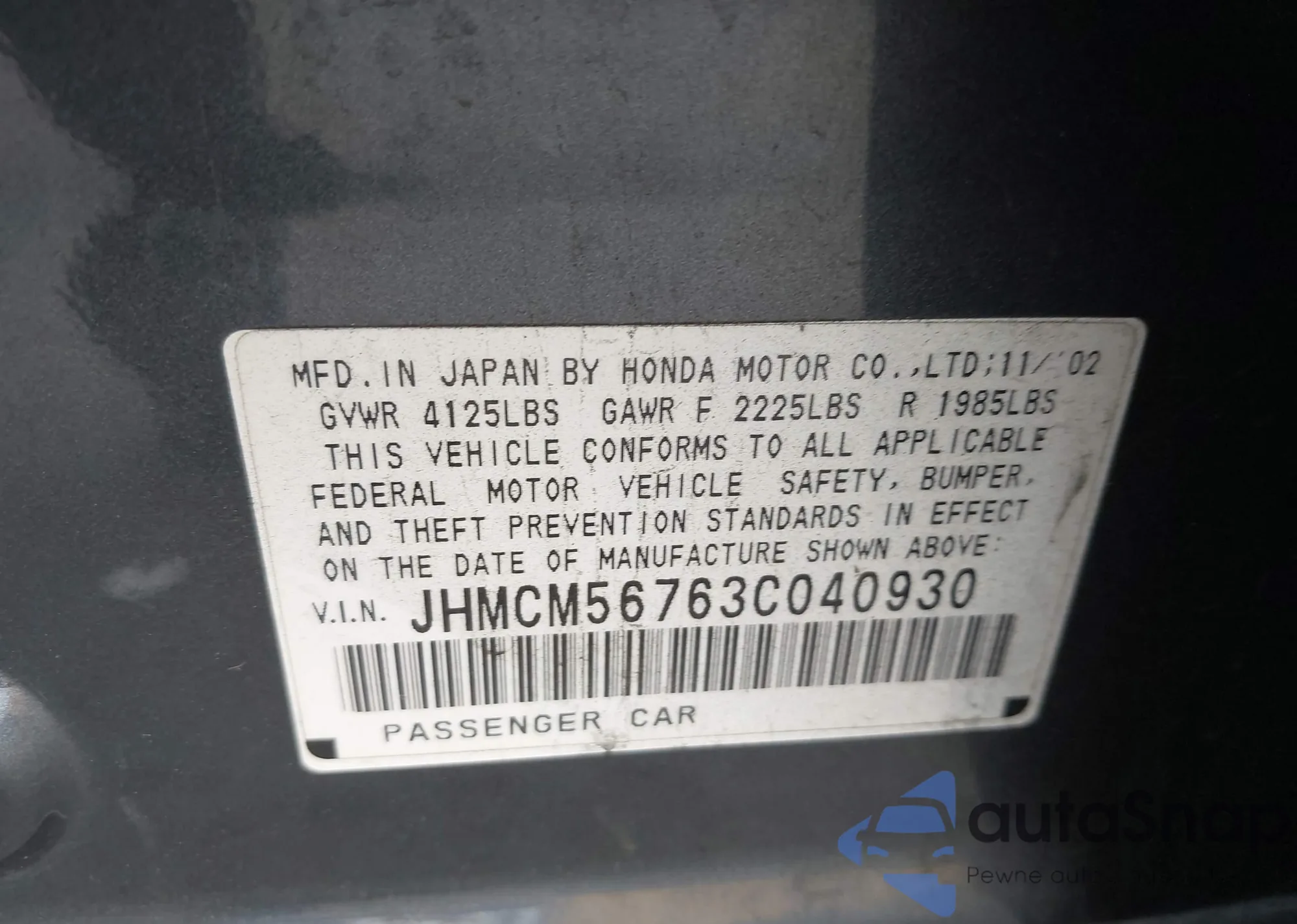 • VIN SHHFK7H9XMU402341