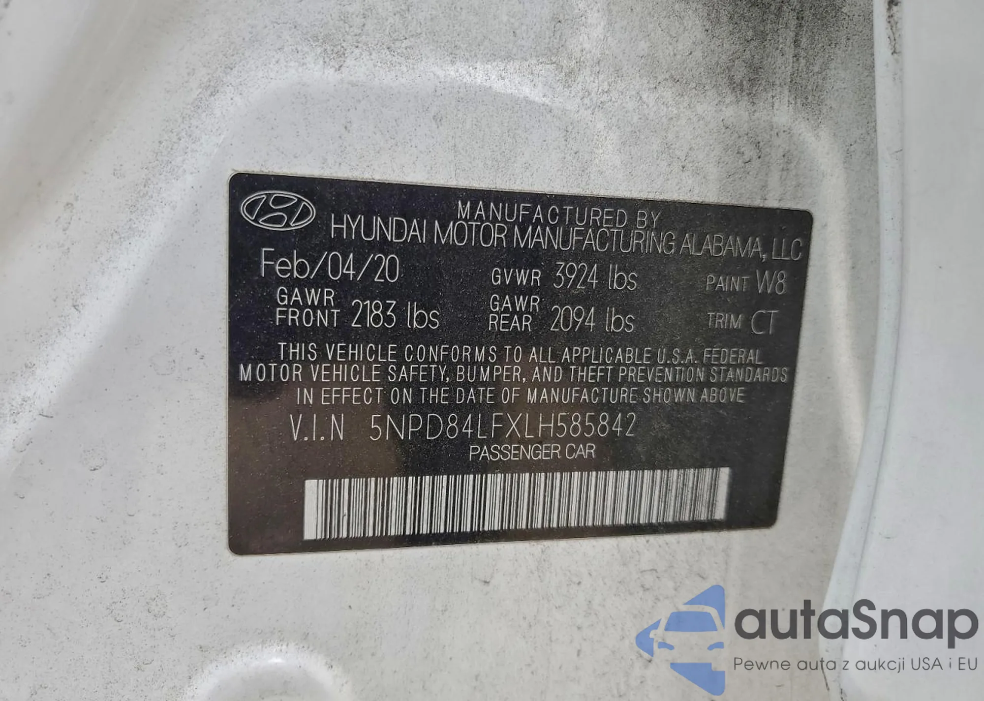 LOT: 83973505 VIN: KMHD35LE6DU121428