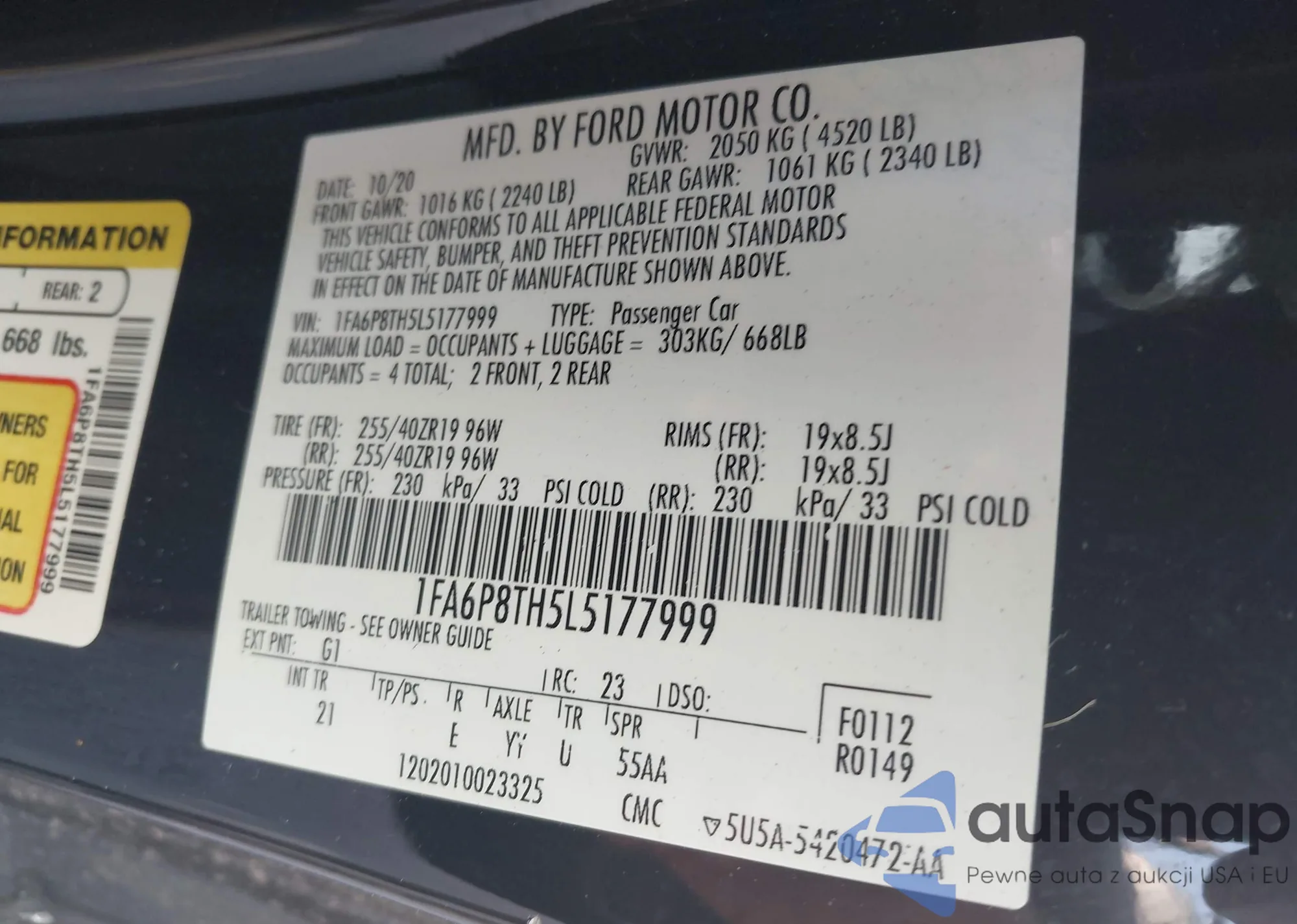 LOT: 43515386 VIN: 5YFEPMAE6MP210357