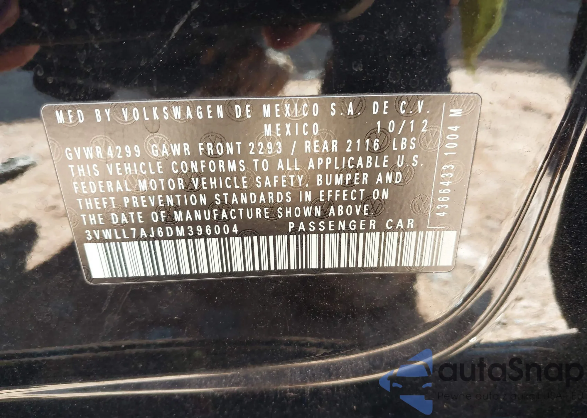• VIN 3VWLL7AJ6DM396004