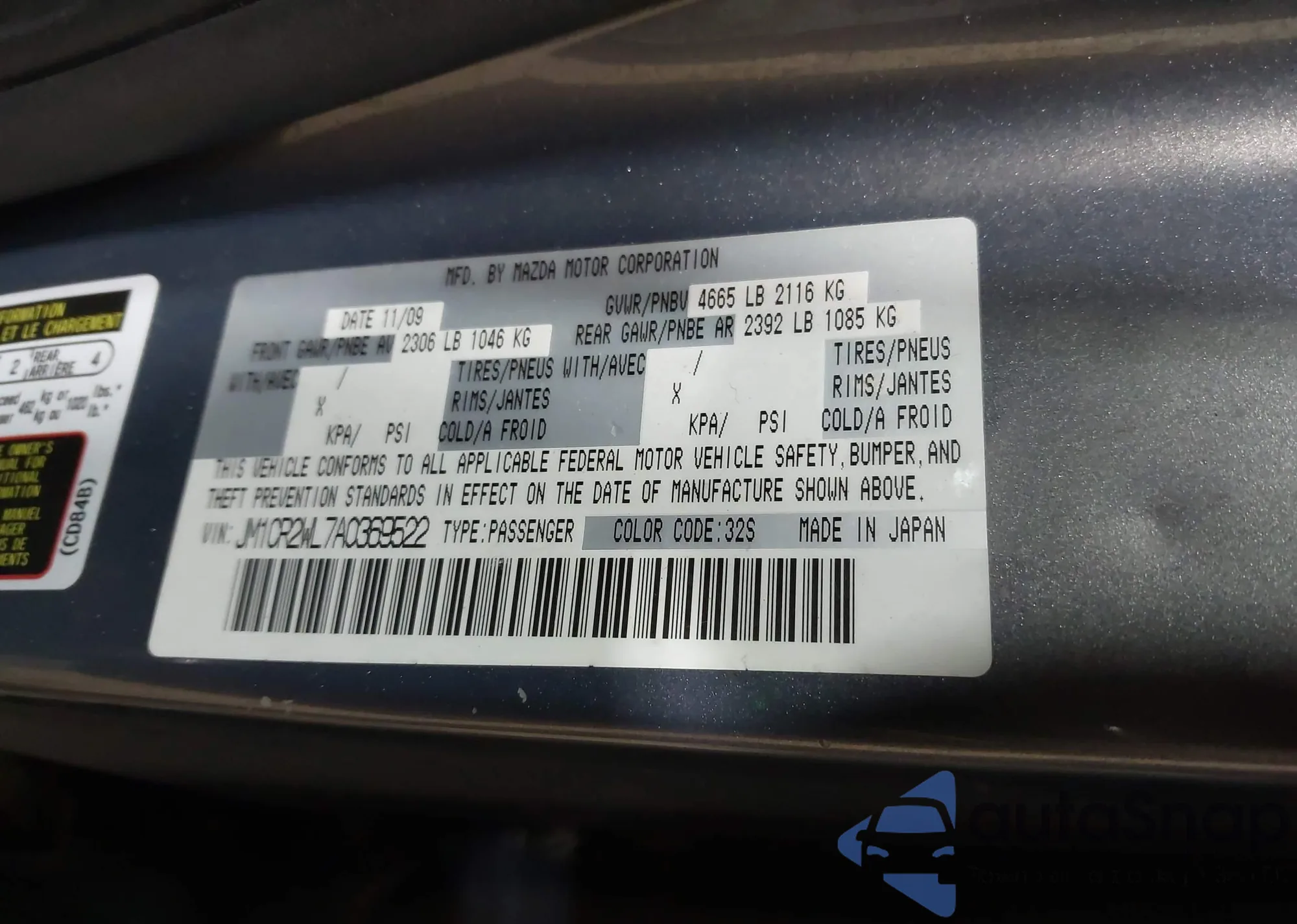 LOT: 43529742 VIN: JM1CR2WL7A0369522