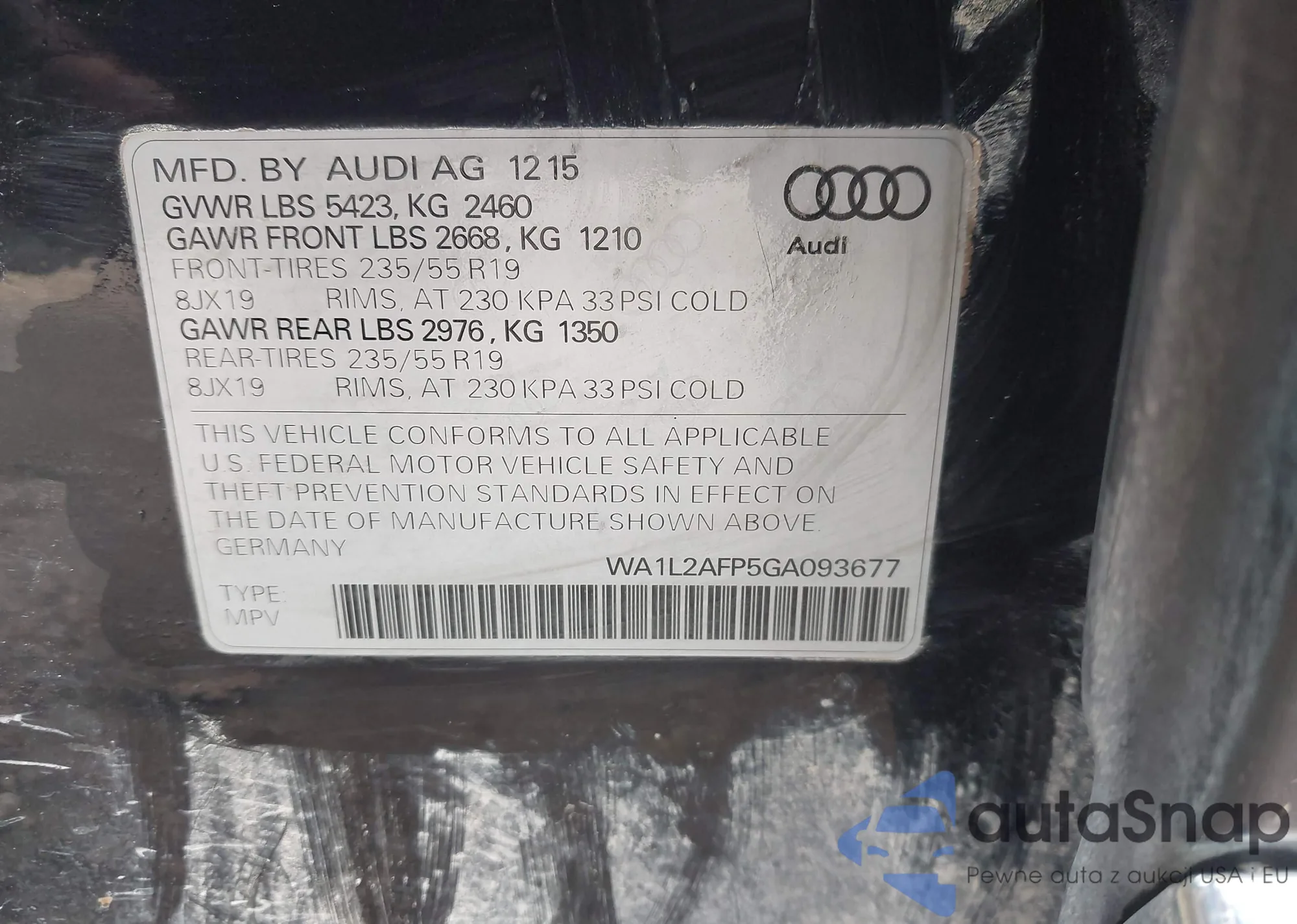• VIN 1C4RJEAT6DC508245