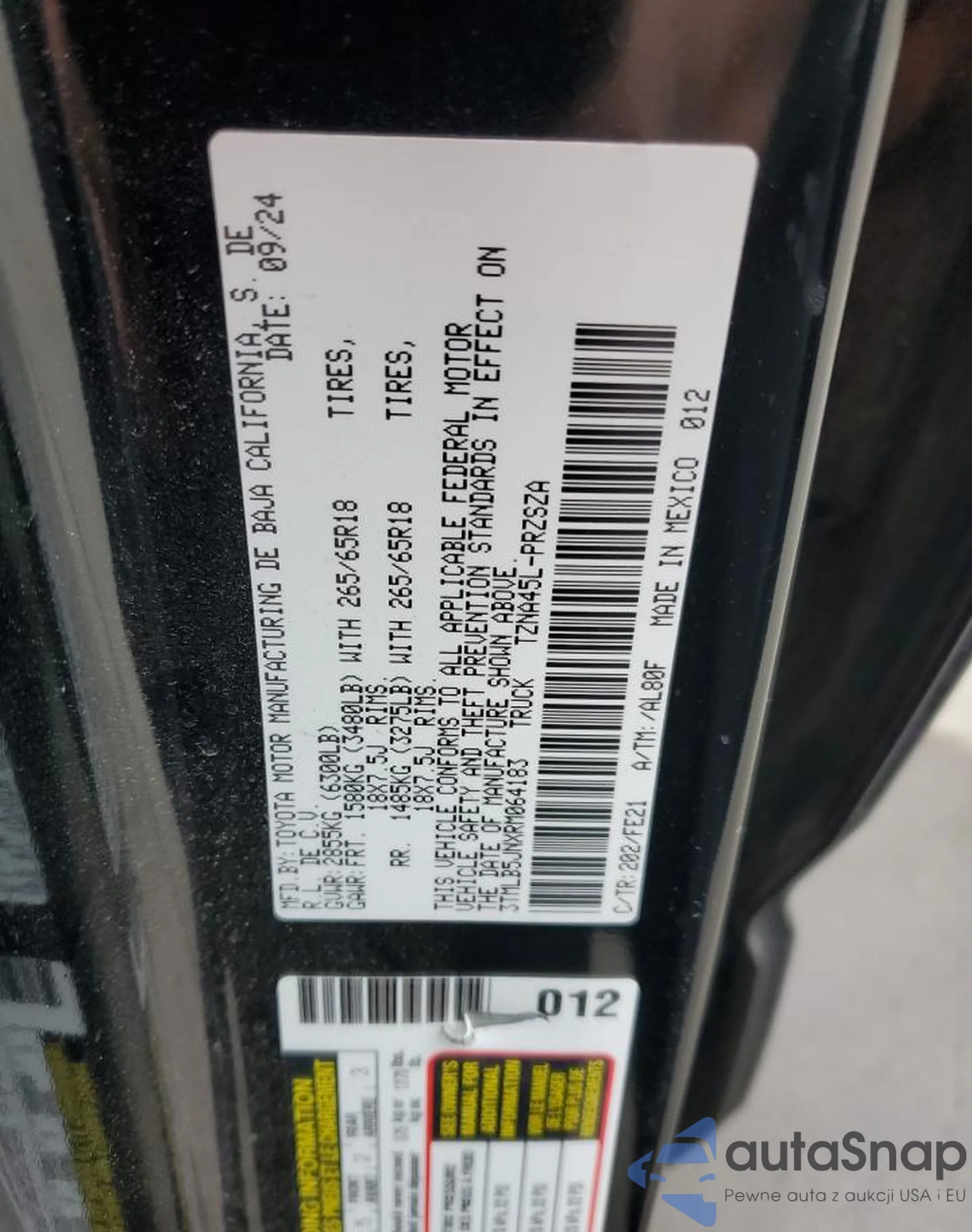 • VIN 5TFAW5F15EX380046