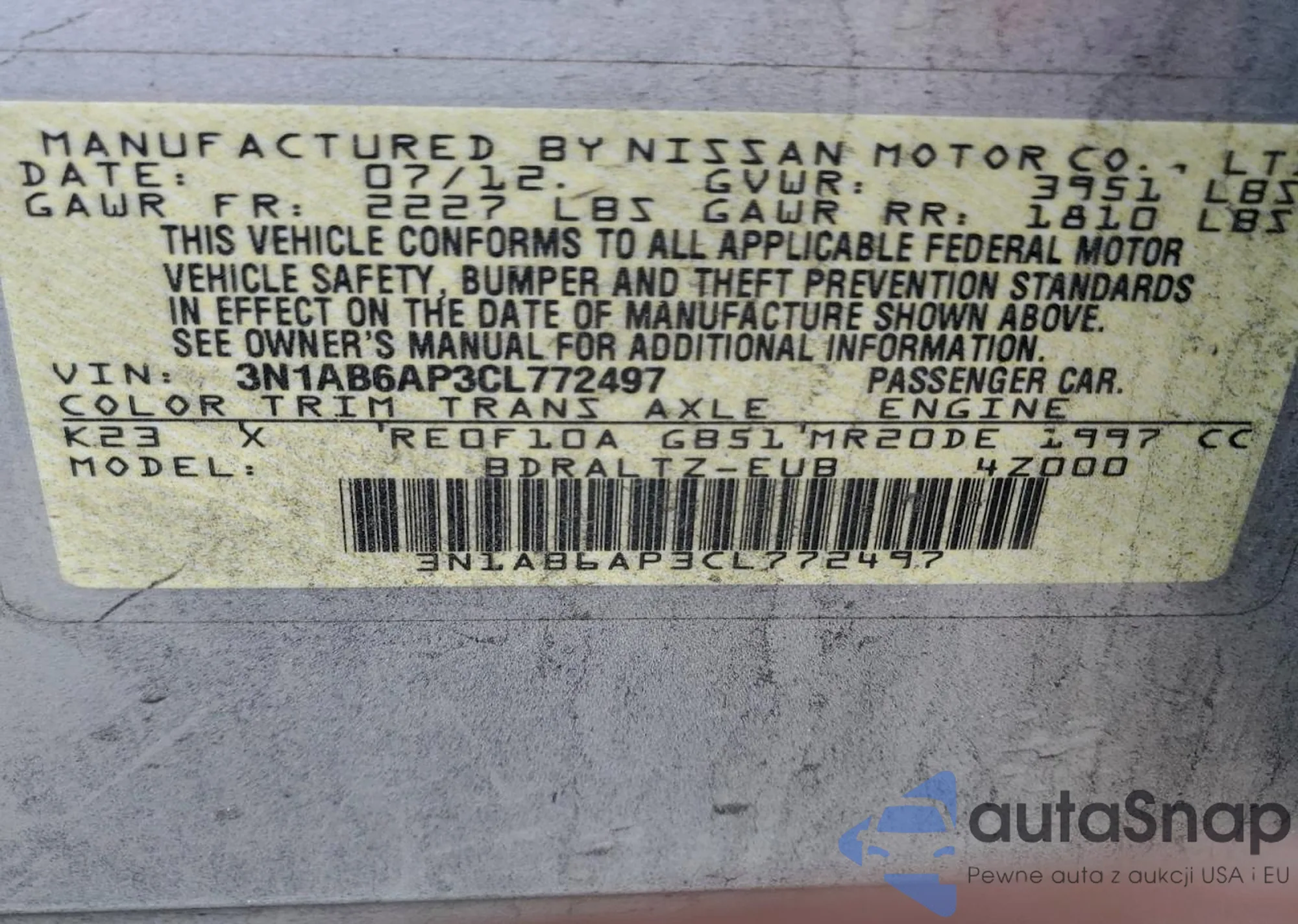 • VIN 3N1AB6AP3CL772497
