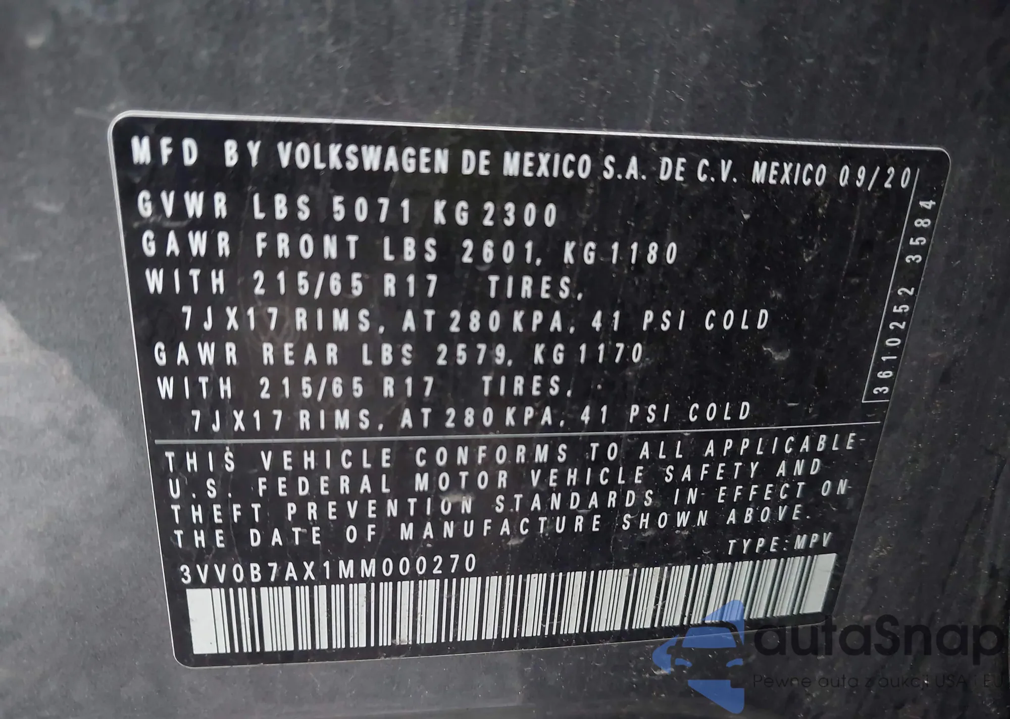 • VIN 3VV0B7AX1MM000270