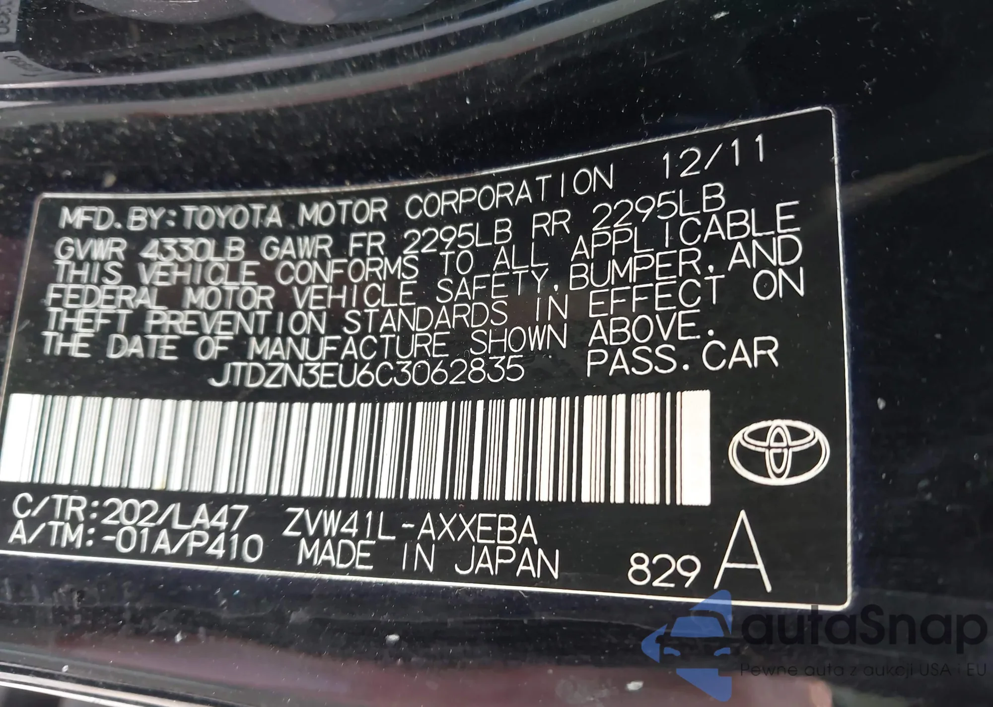 LOT: 43934152 VIN: JTDJT923985159623
