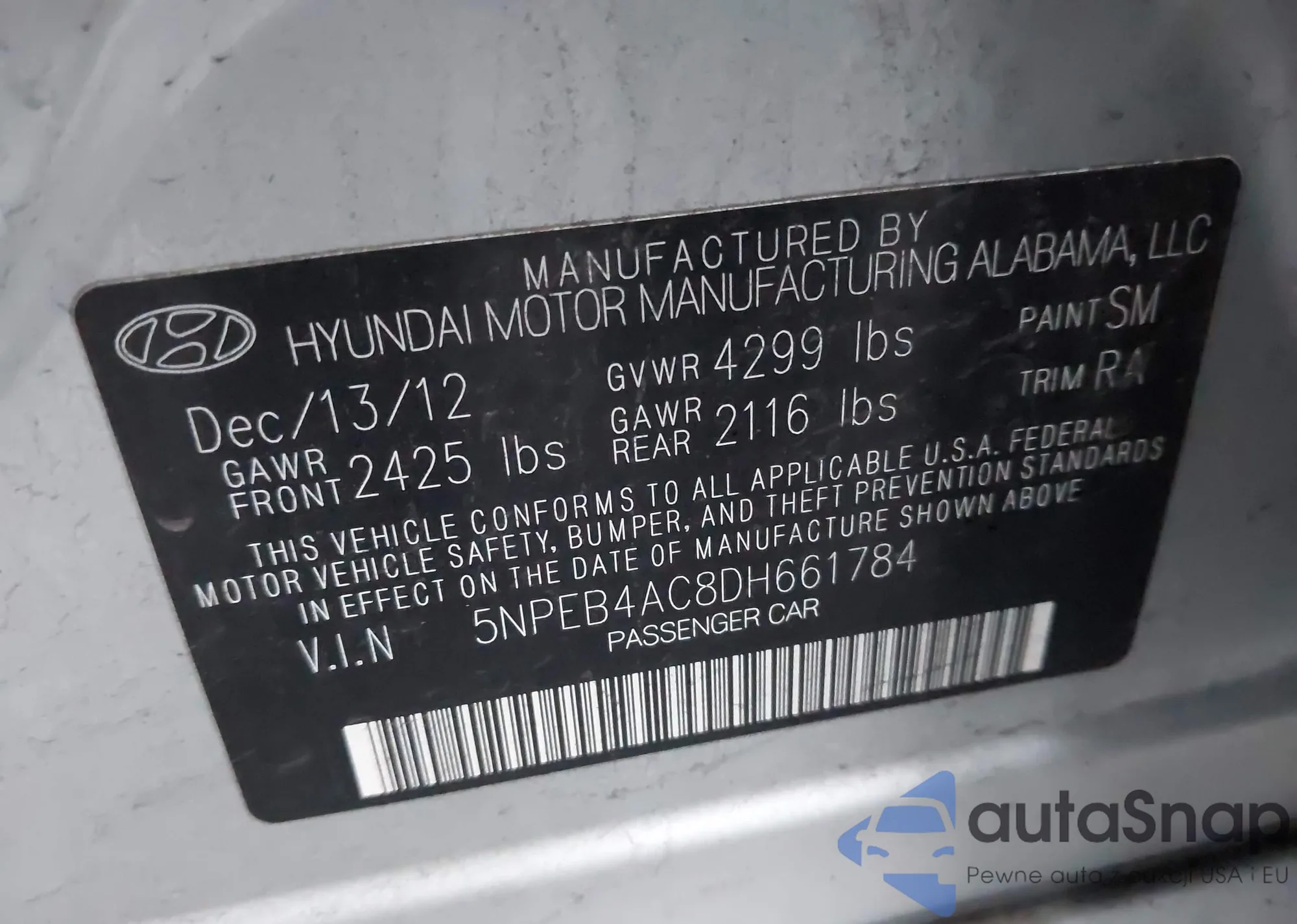 • VIN 5NPEB4AC8DH661784