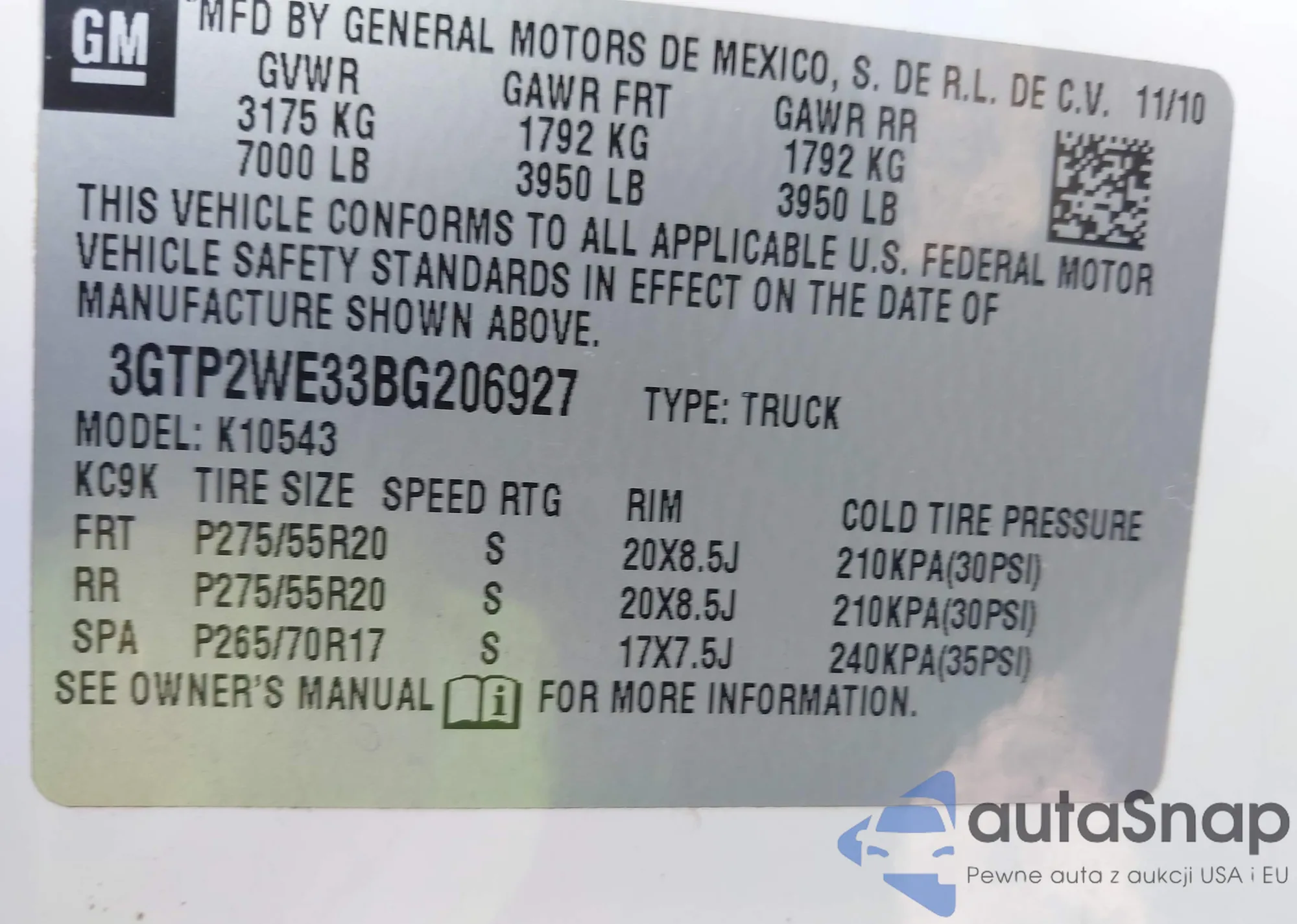 • VIN 3GTP2WE33BG206927