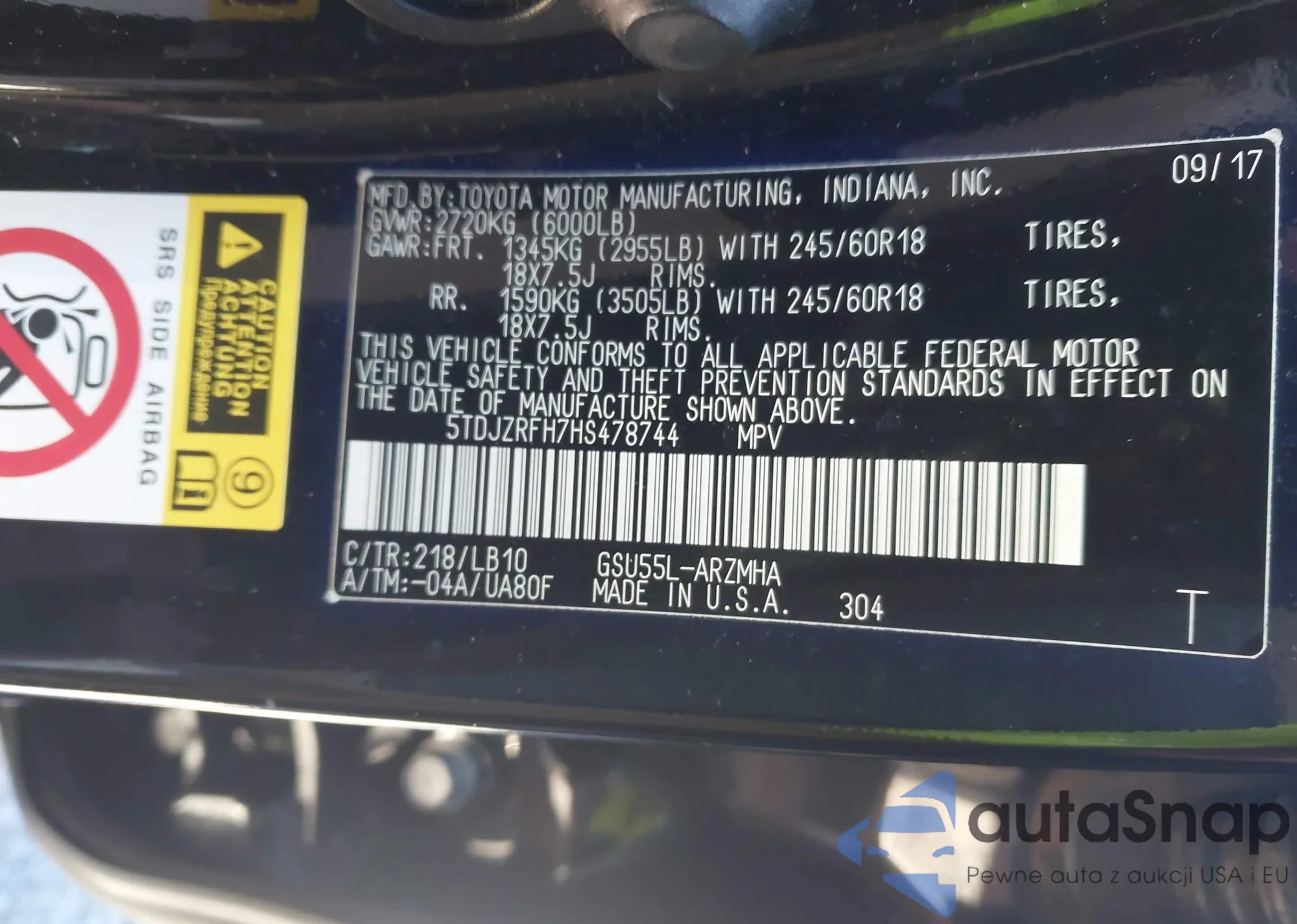 • VIN 5TDJZRFH7HS478744