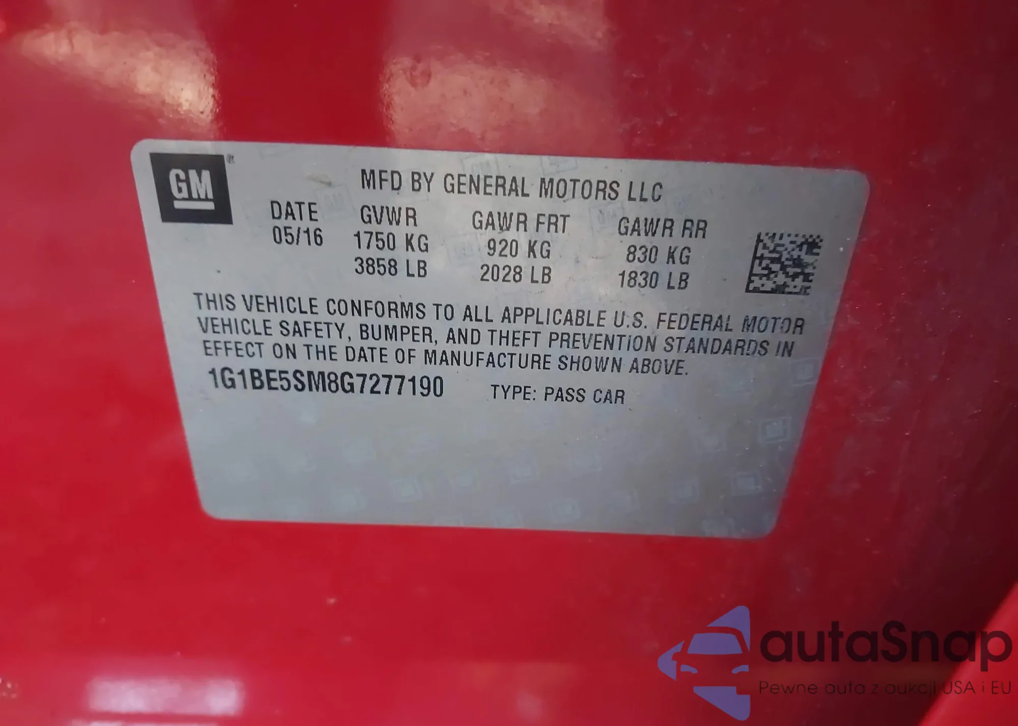 LOT: 43469000 VIN: 1G1BE5SM8G7277190