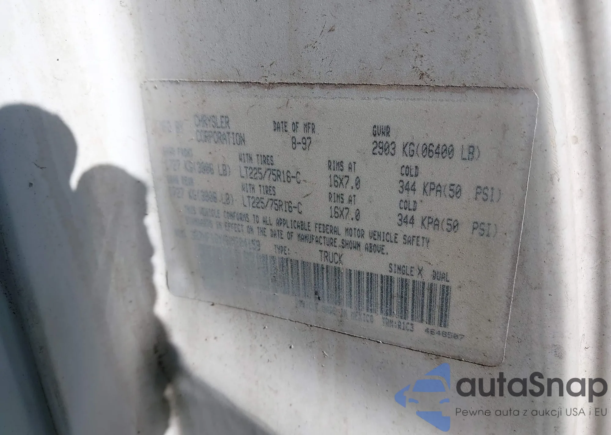 • VIN 3B7HF16Y0WM204159