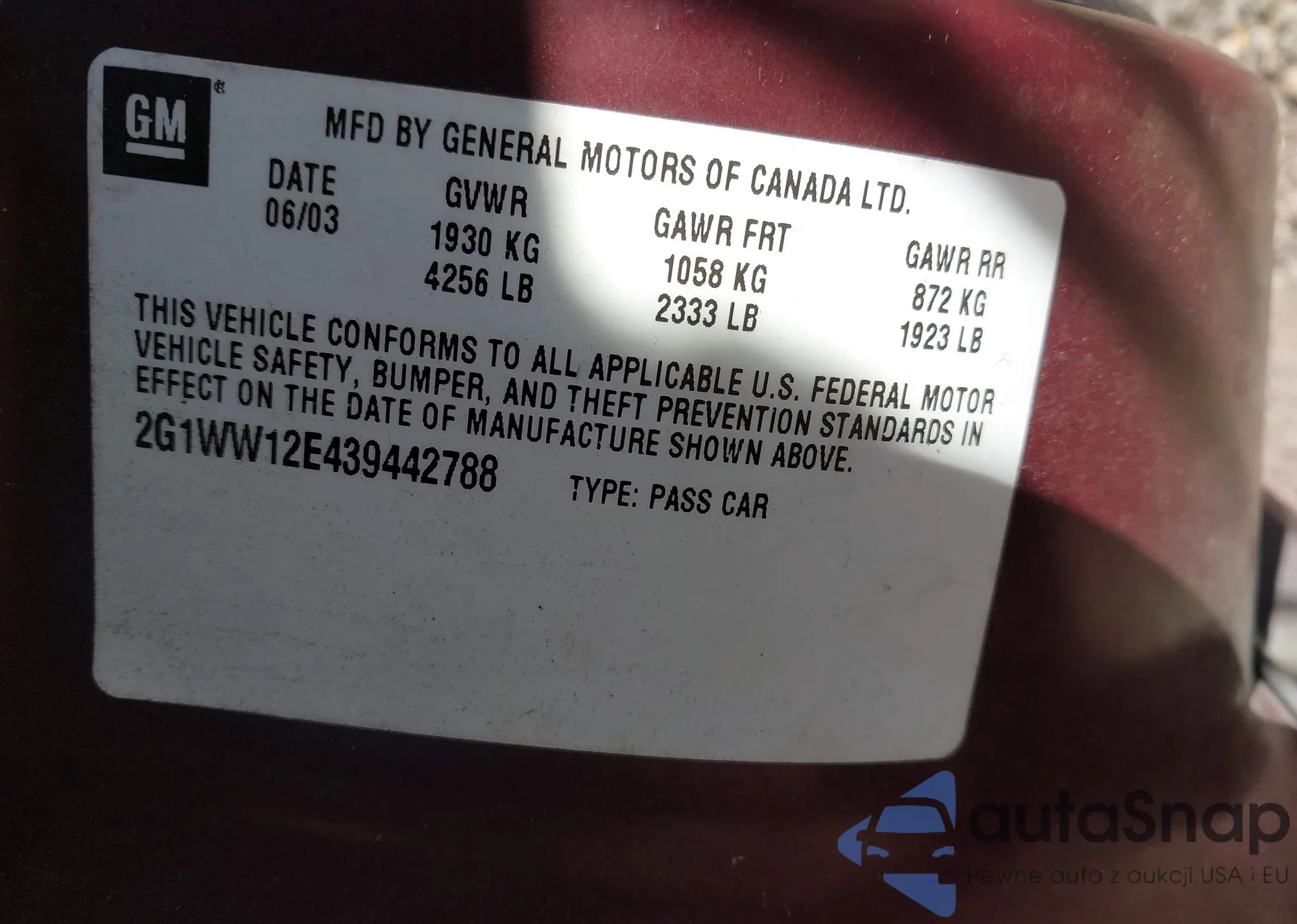 LOT: 43856755 VIN: 2G4WC532051293689
