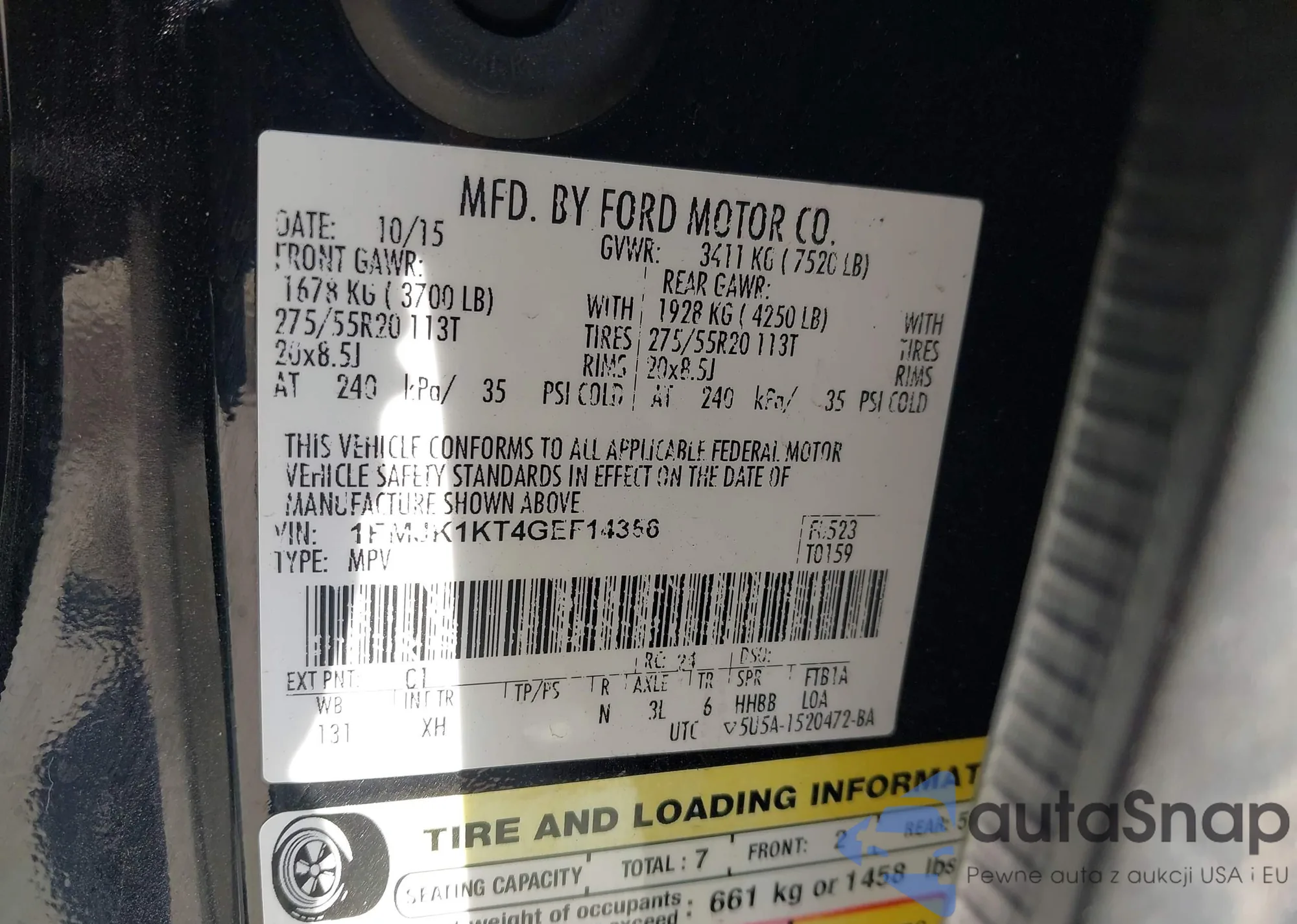 LOT: 43746893 VIN: 1FMJK1KT4GEF14356