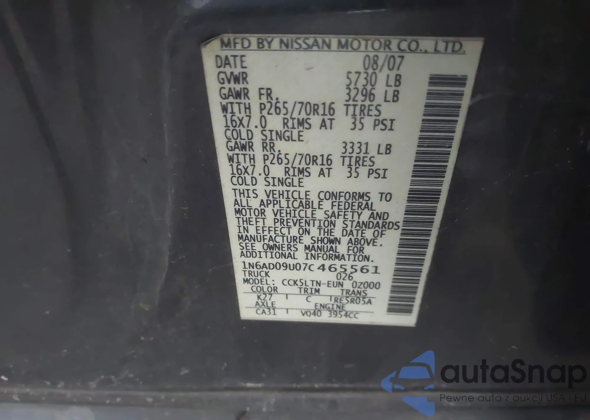 • VIN JHLRE48717C071138