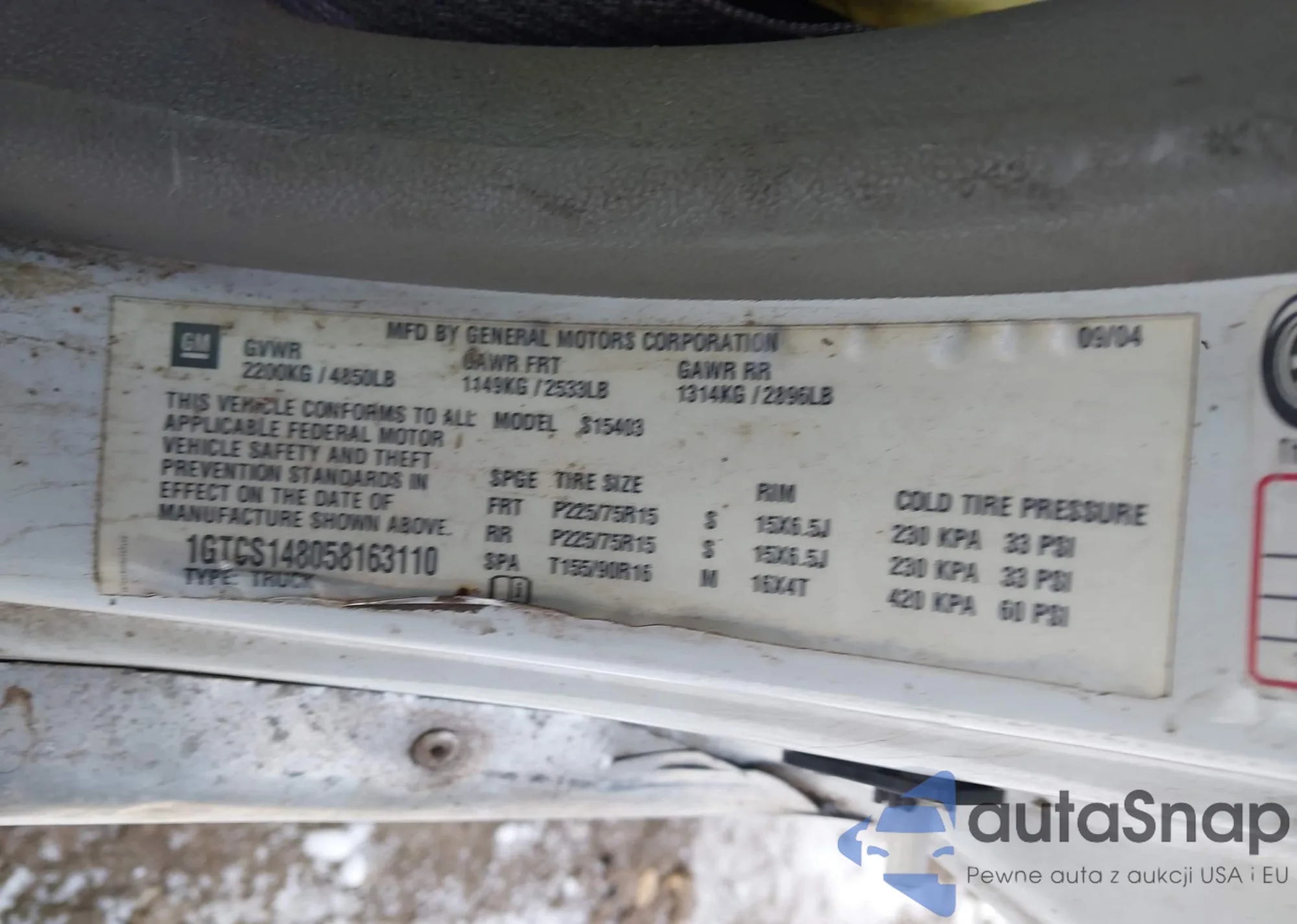 • VIN 1GTCS148058163110