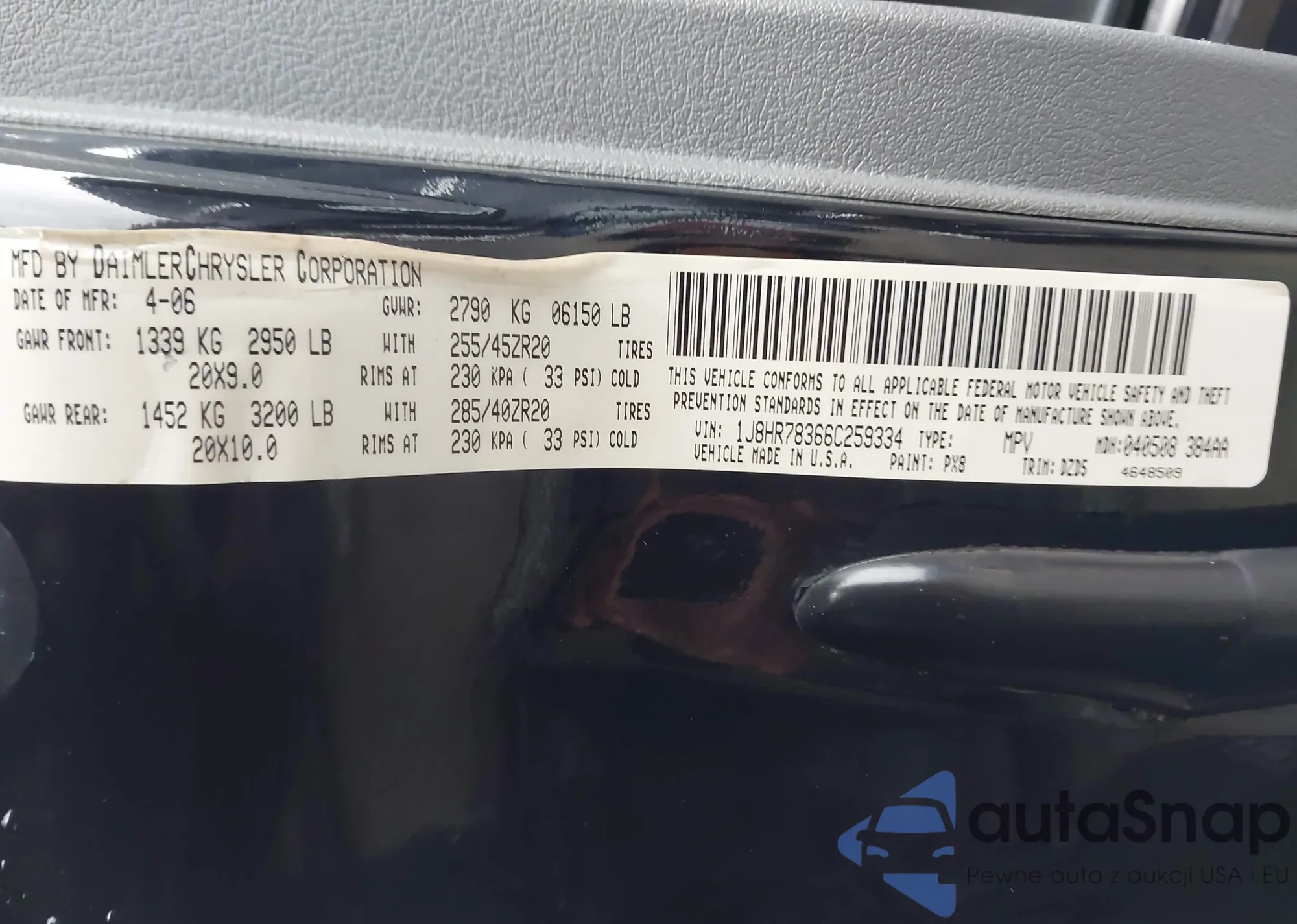 LOT: 43884906 VIN: 1HGCM72666A003369