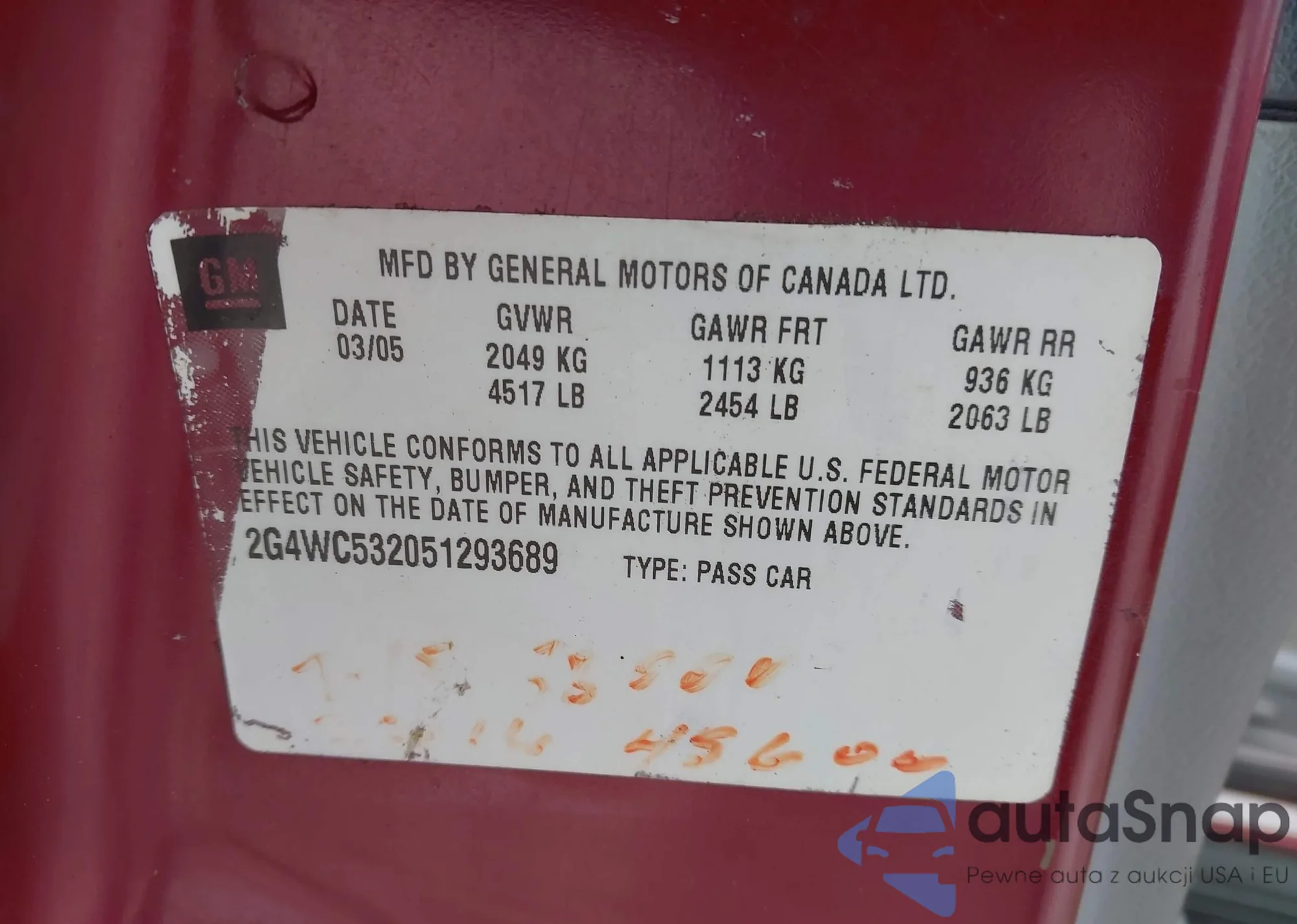 • VIN 2G4WC532051293689