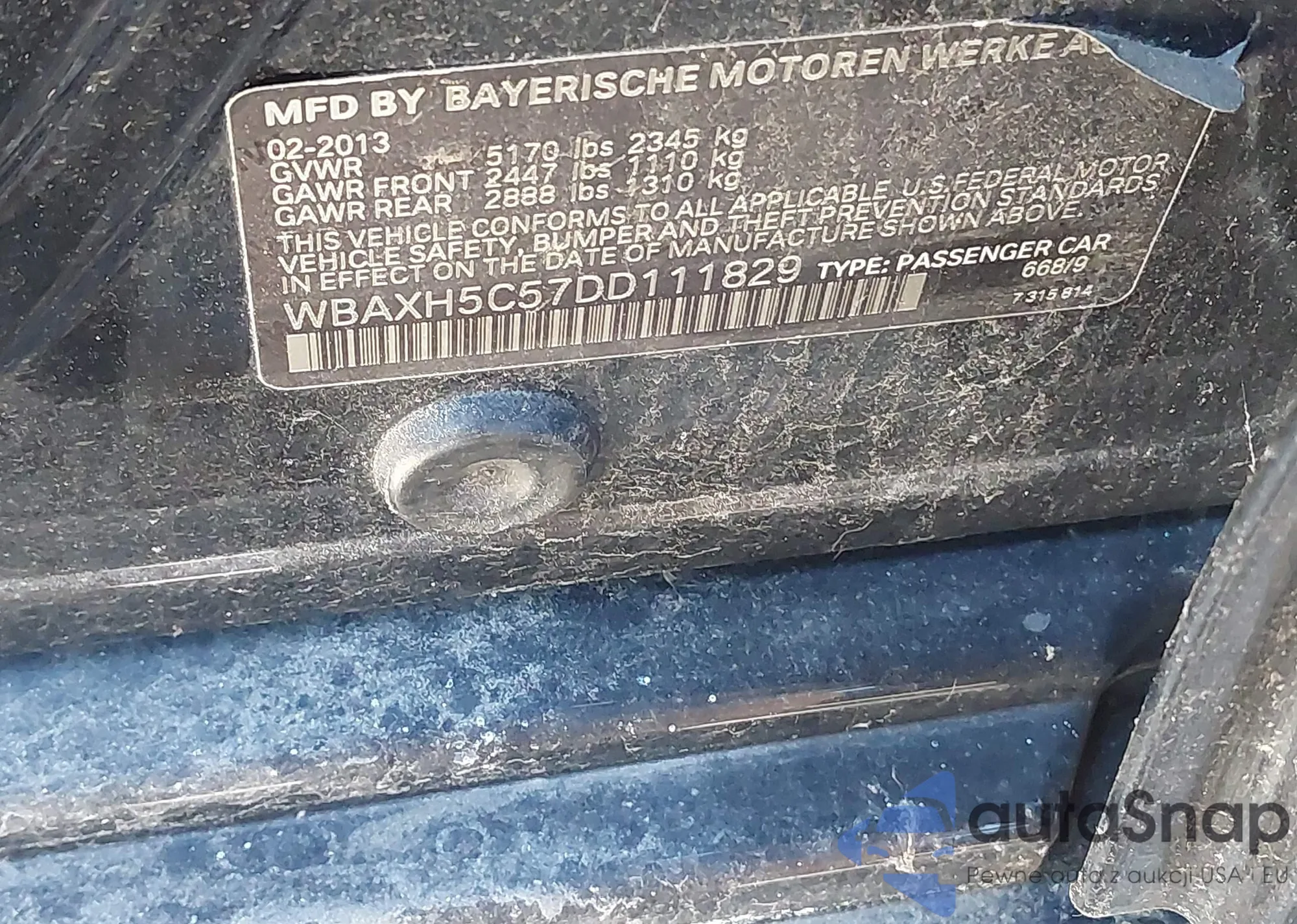 LOT: 43928316 VIN: WBAXH5C57DD111829