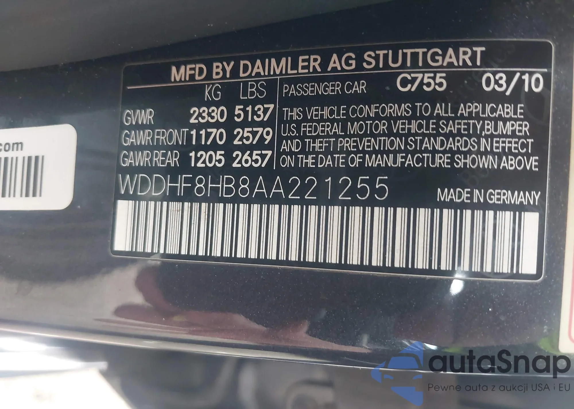 • VIN WBAXH5C57DD111829