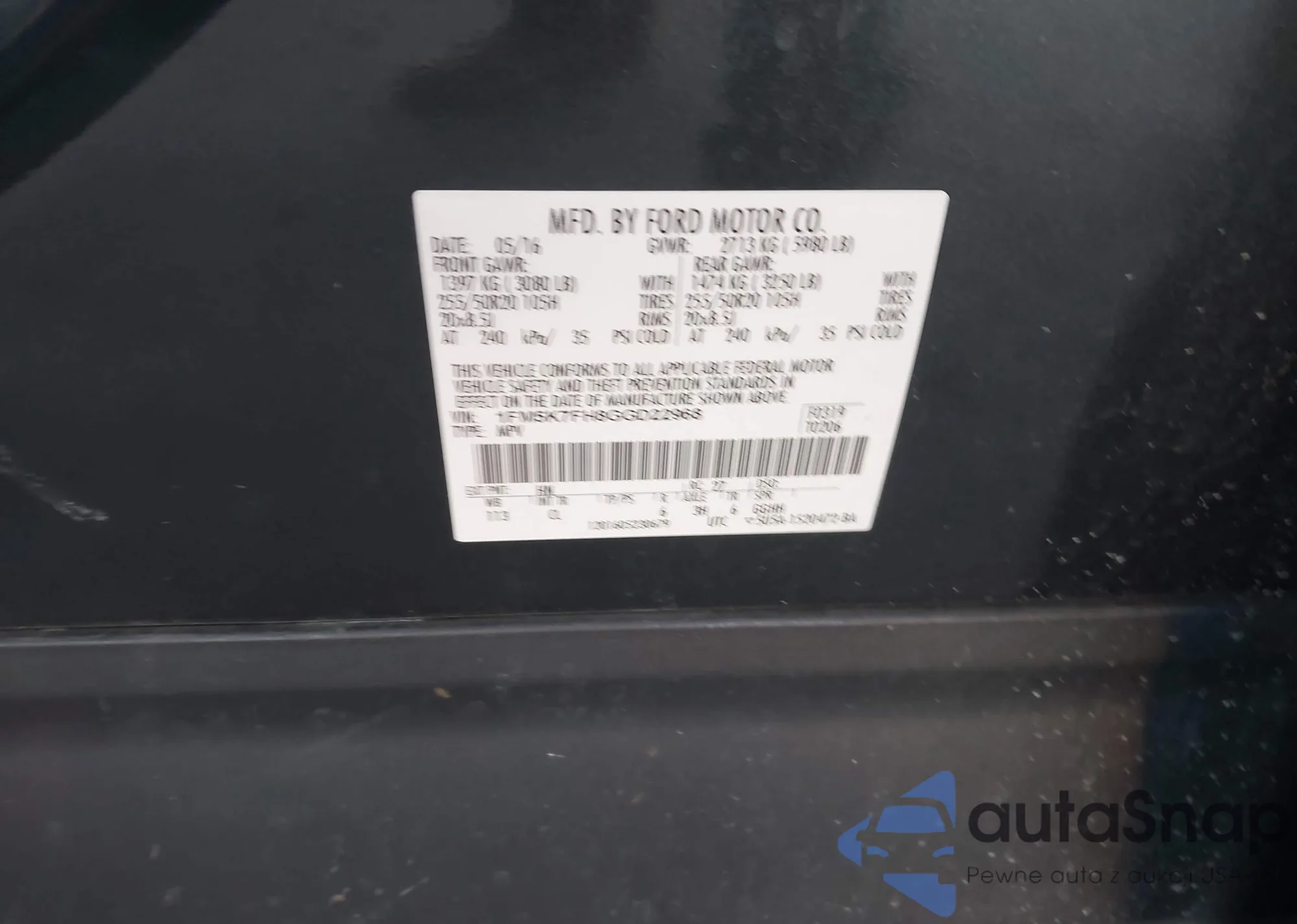 LOT: 43892538 VIN: 1FM5K7D82FGA32209