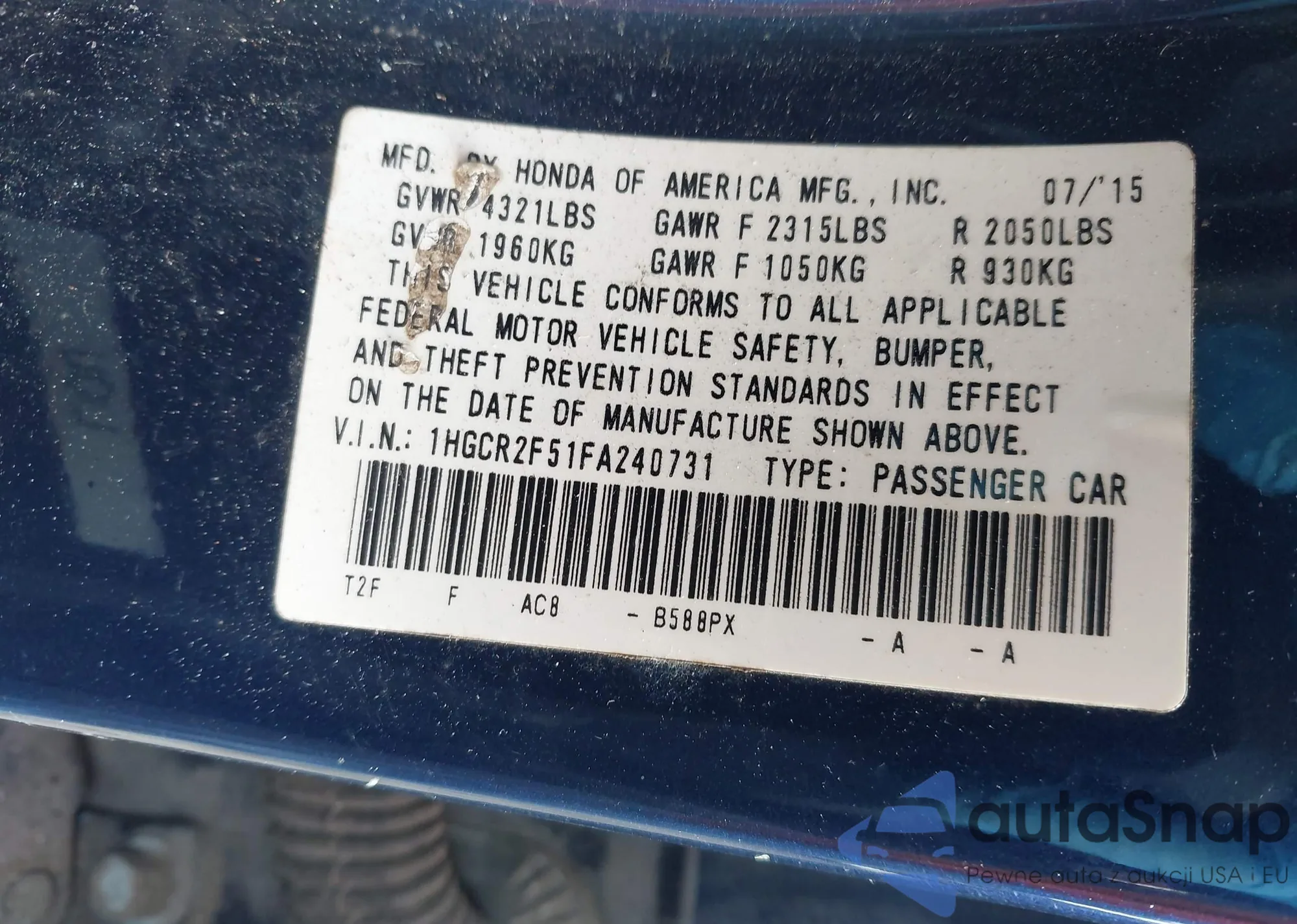 LOT: 43871884 VIN: 5J6YH28797L008075