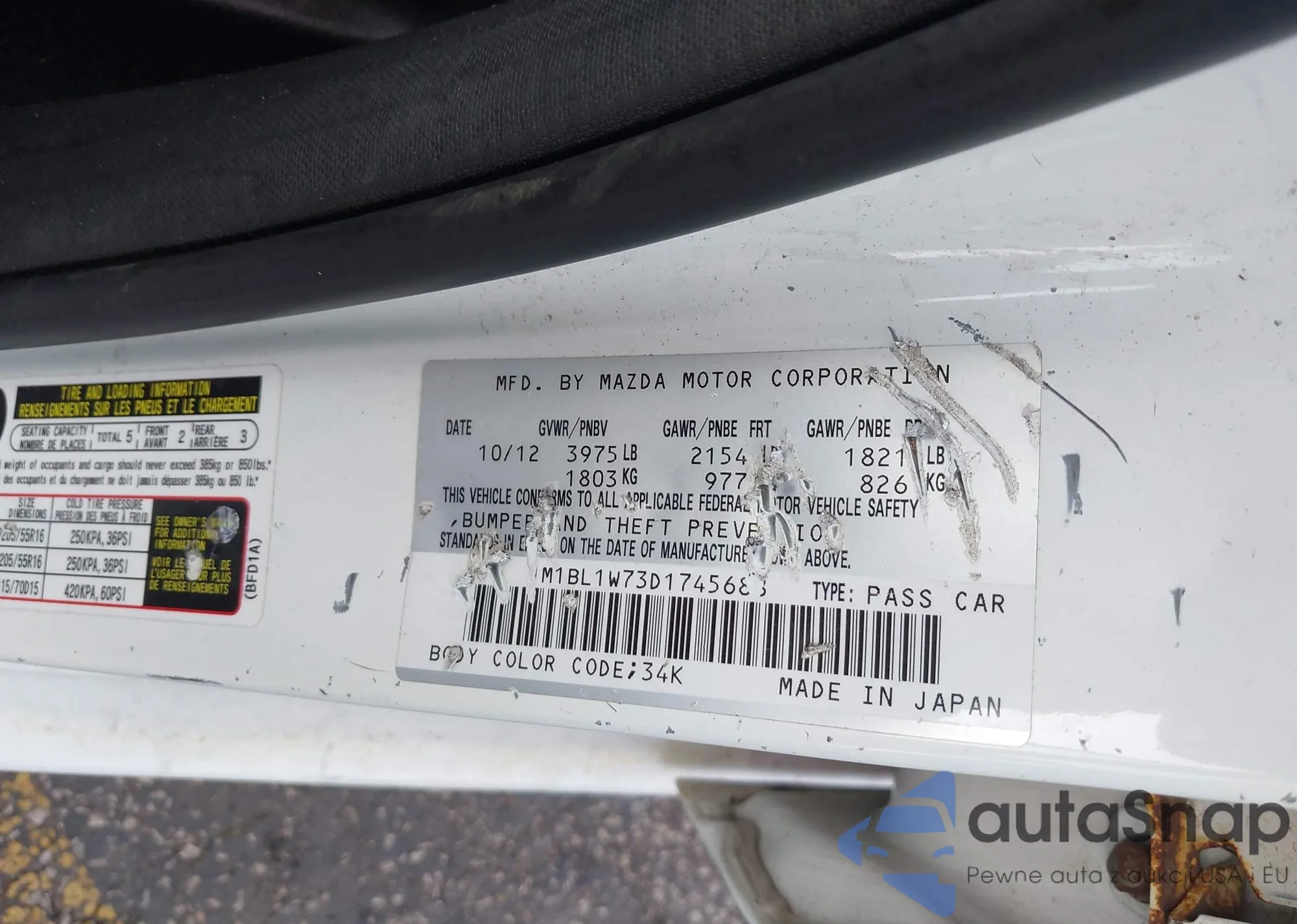 LOT: 43749264 VIN: JM1BL1W73D1745688