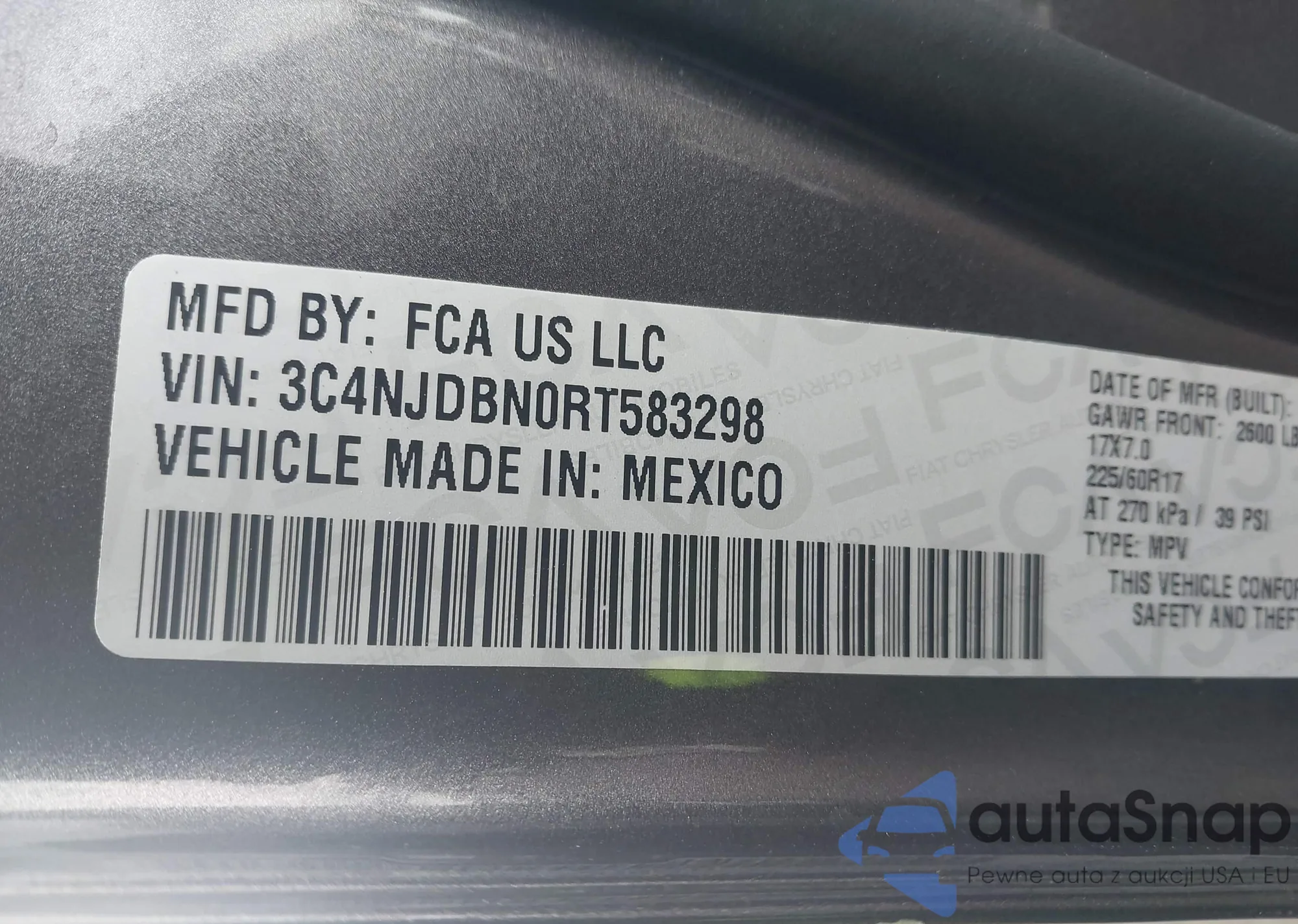 LOT: 43639917 VIN: 7JRL12TW9PG254900