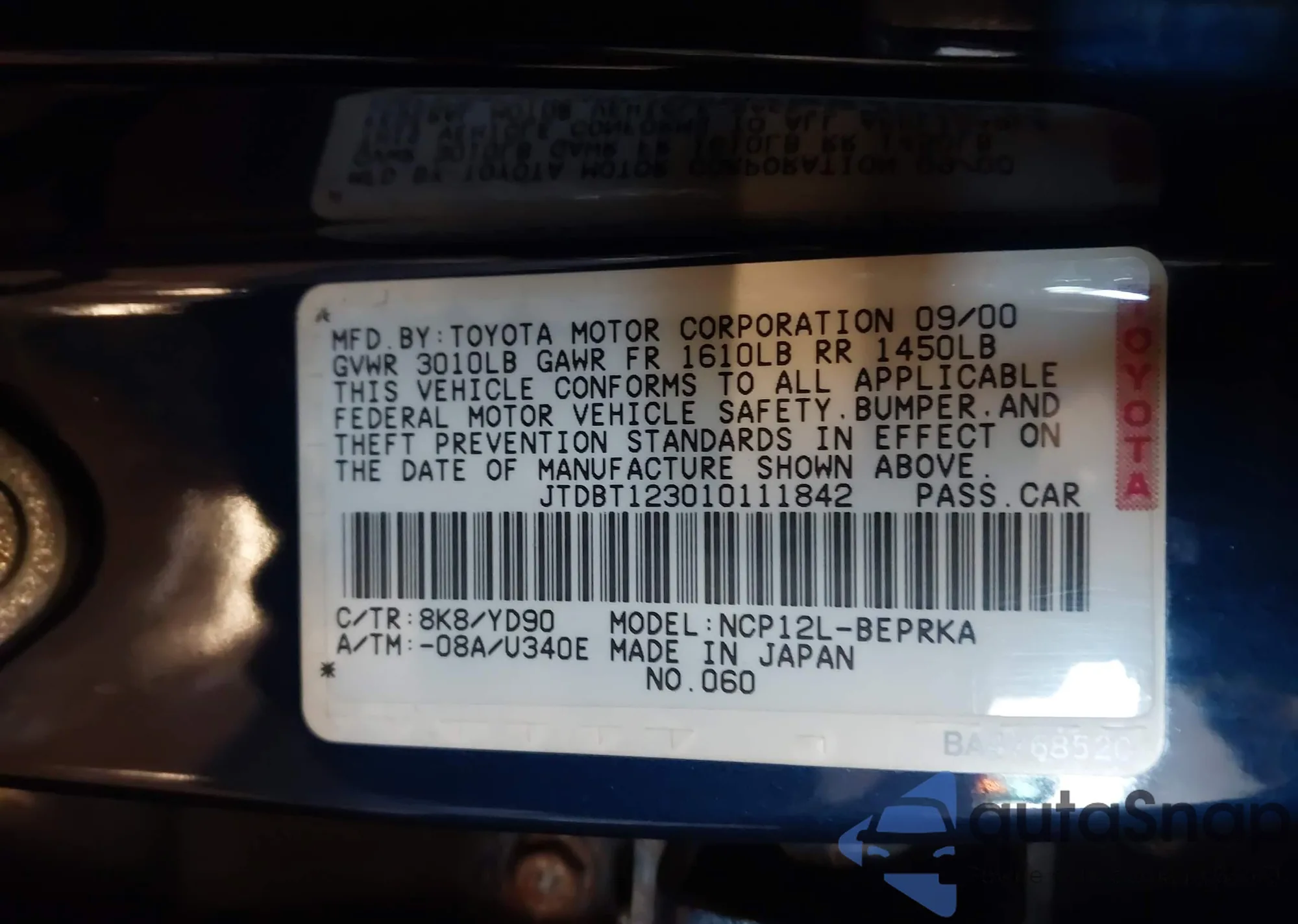 • VIN JTDBT123010111842
